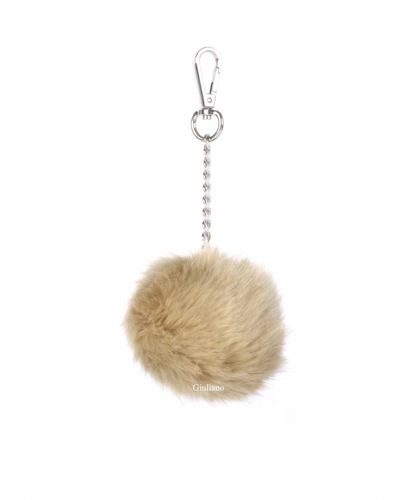 • Bolletje sleutelhanger aan een zilverkleurig kettinkje met klipsluiting.