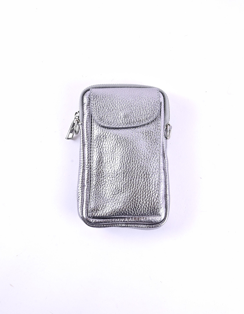 • Lederen telefoontasje met rits. Het telefoontasje heeft ook nog een voor vak die sluit doormiddel van een drukknop.
