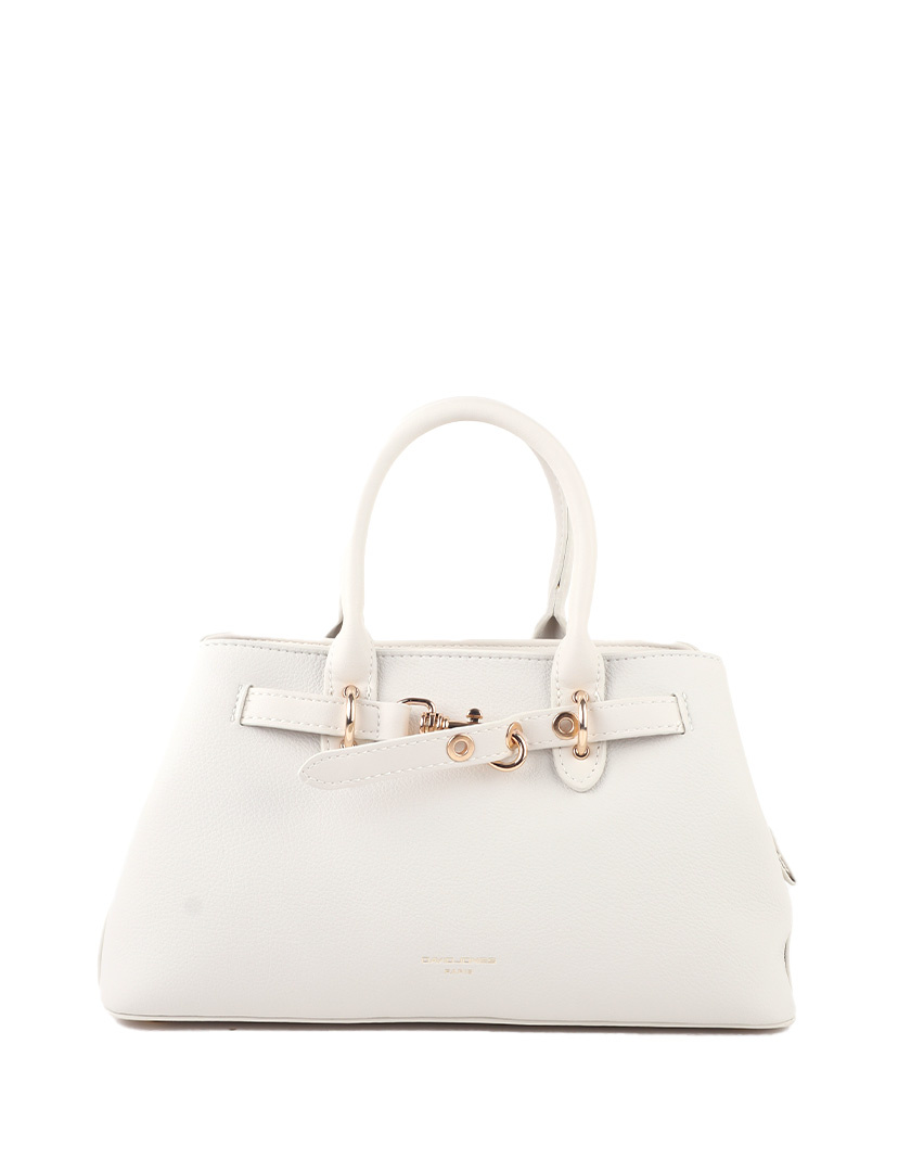 Stijlvolle David Jones handtas gemaakt van zacht PVC met elegante leren details. Voorzien van een ruim hoofdvak, stevige handgrepen en een afneembare schouderriem voor veelzijdig draagcomfort.