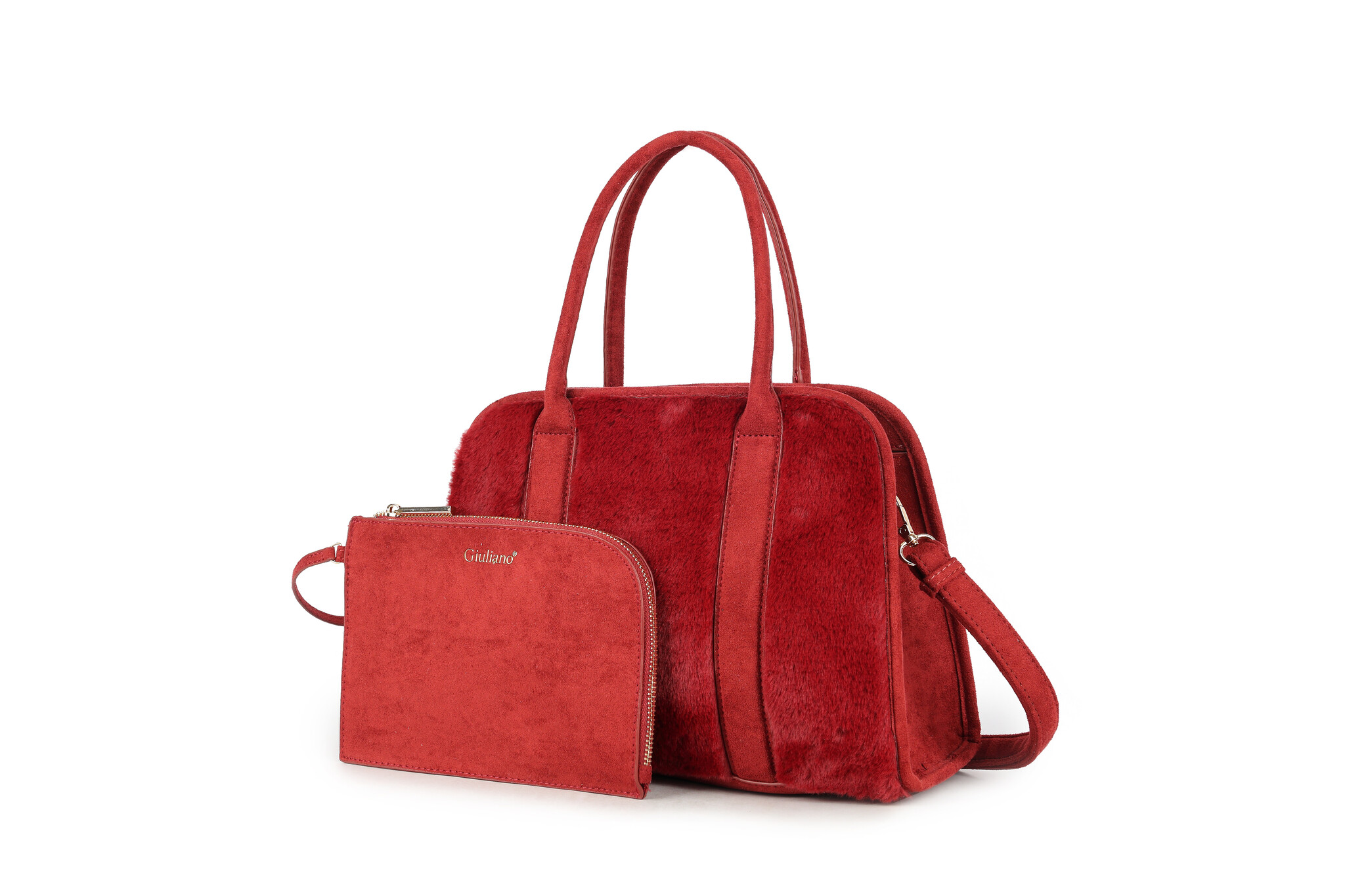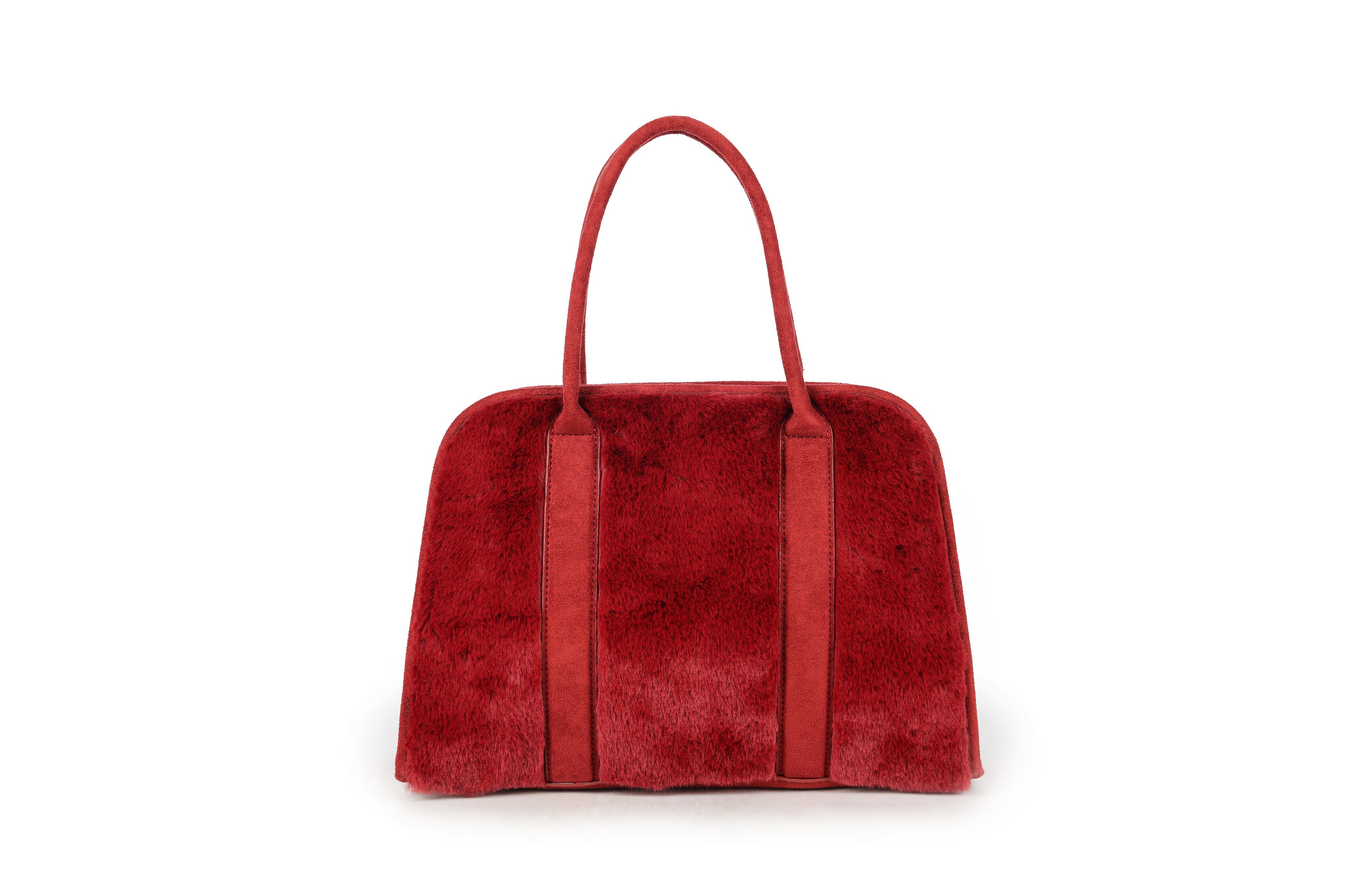 Stijlvolle wintertas met zachte suèdelook en witte bontflap. Voorzien van handvat, verstelbare schouderband en handige binnenvakken. Perfect voor elke winteroutfit.