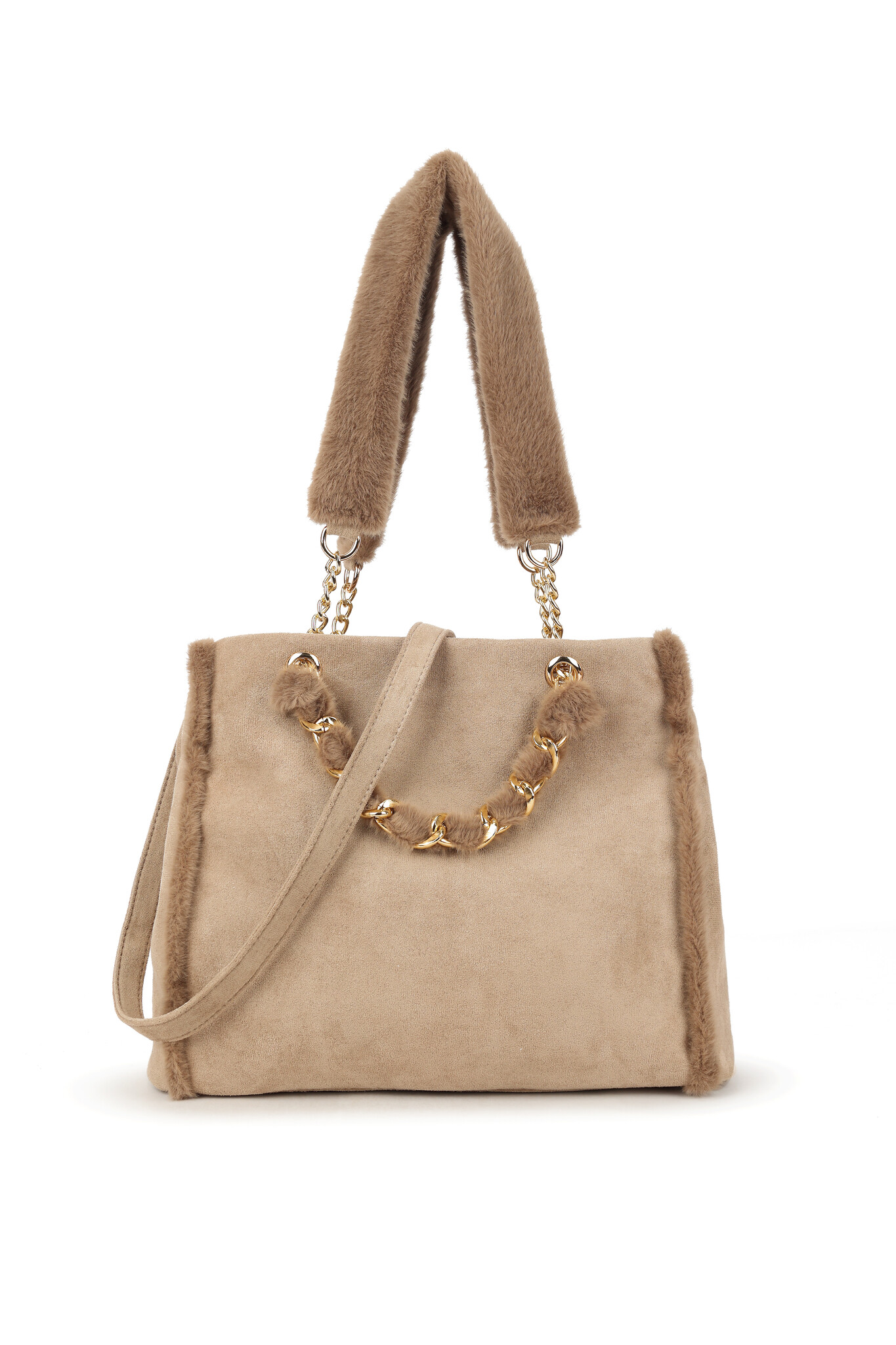 Trendy schoudertas van Giuliano in taupe, bruin of zwart. Gemaakt van kunstleer met goudkleurige gesp. Compact en elegant, met meerdere vakken en afneembare schouderband. Perfect voor dagelijks stijlvol gebruik.