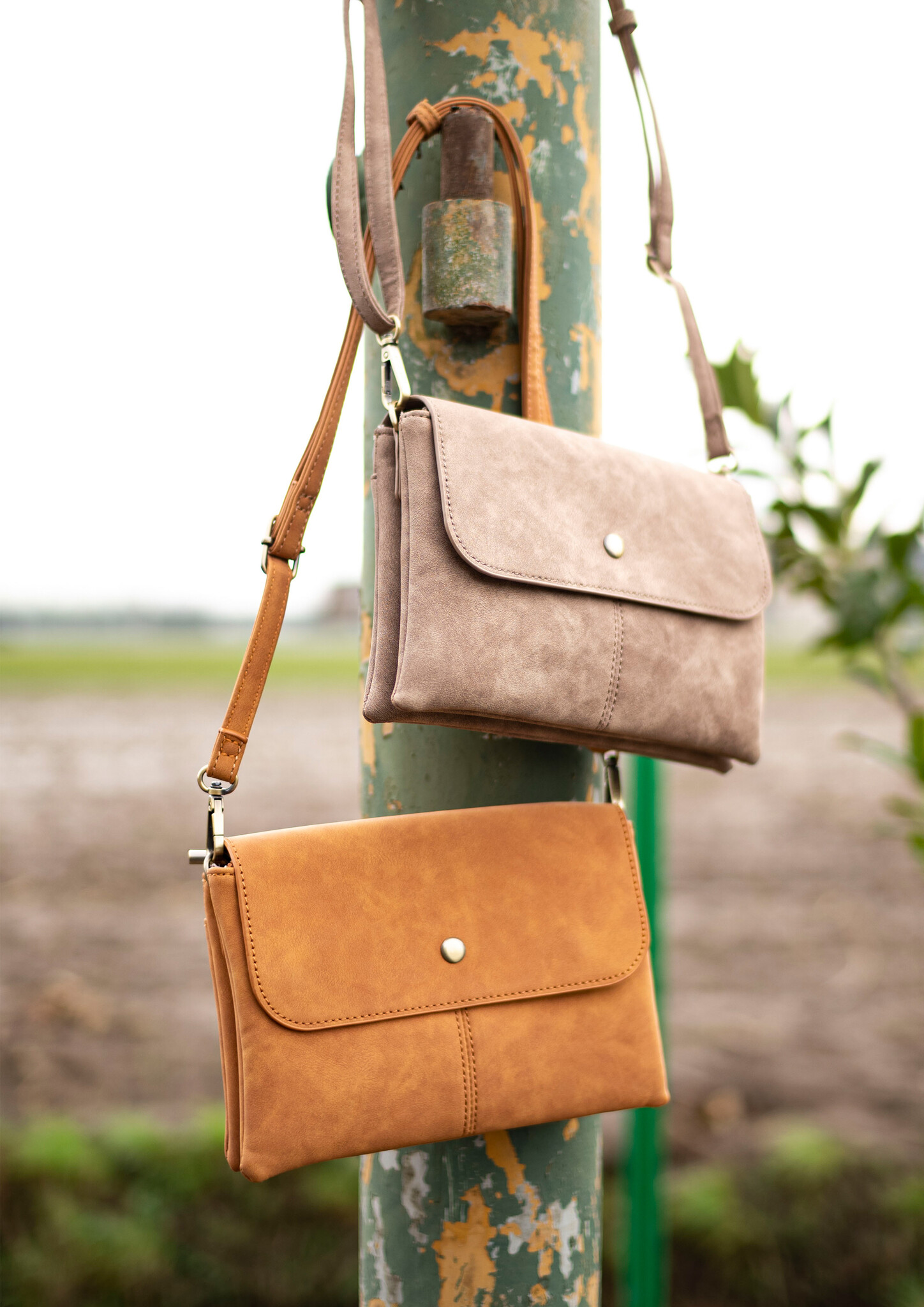 • Kunstlederen clutch met een gewassen look. De clutch heeft een verstelbare en afneembare schouderband