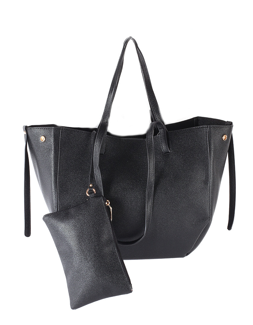 • Elegante kunstlederen handtas met twee stevige handvatten: een kort voor in de hand en een langer voor over de schouder. De tas is voorzien van zijknoopjes waarmee je de uitstraling kunt variëren