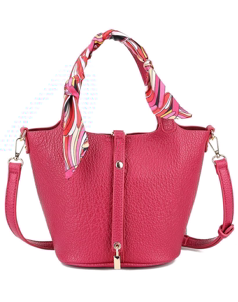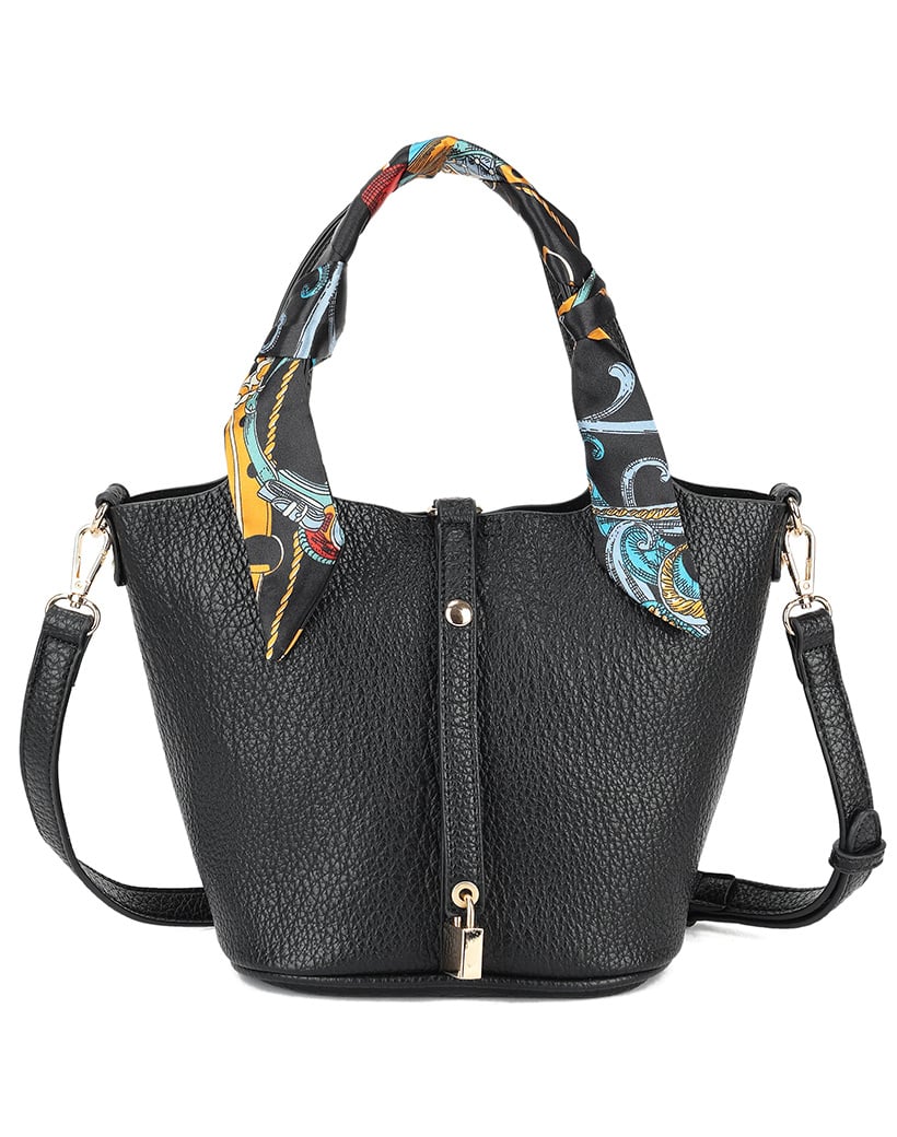 • Kunstlederen handtas met een leuke sjaal. Daarnaast zit er standaard een schouderband bij de handtas die verstelbaar en afneembaar is.