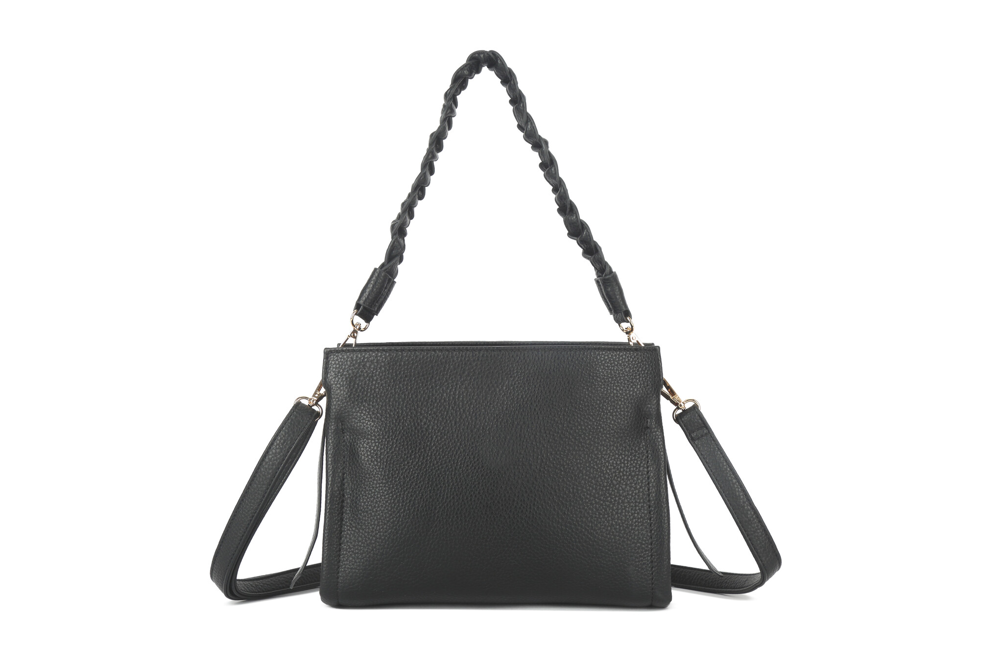 Trendy handtas van kunstleer met gevlochten handvat en extra schouderriem. Dankzij meerdere ritsvakken en een ruim interieur is deze tas zowel stijlvol als praktisch voor dagelijks gebruik.