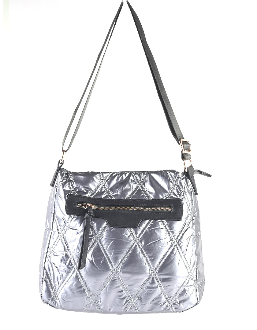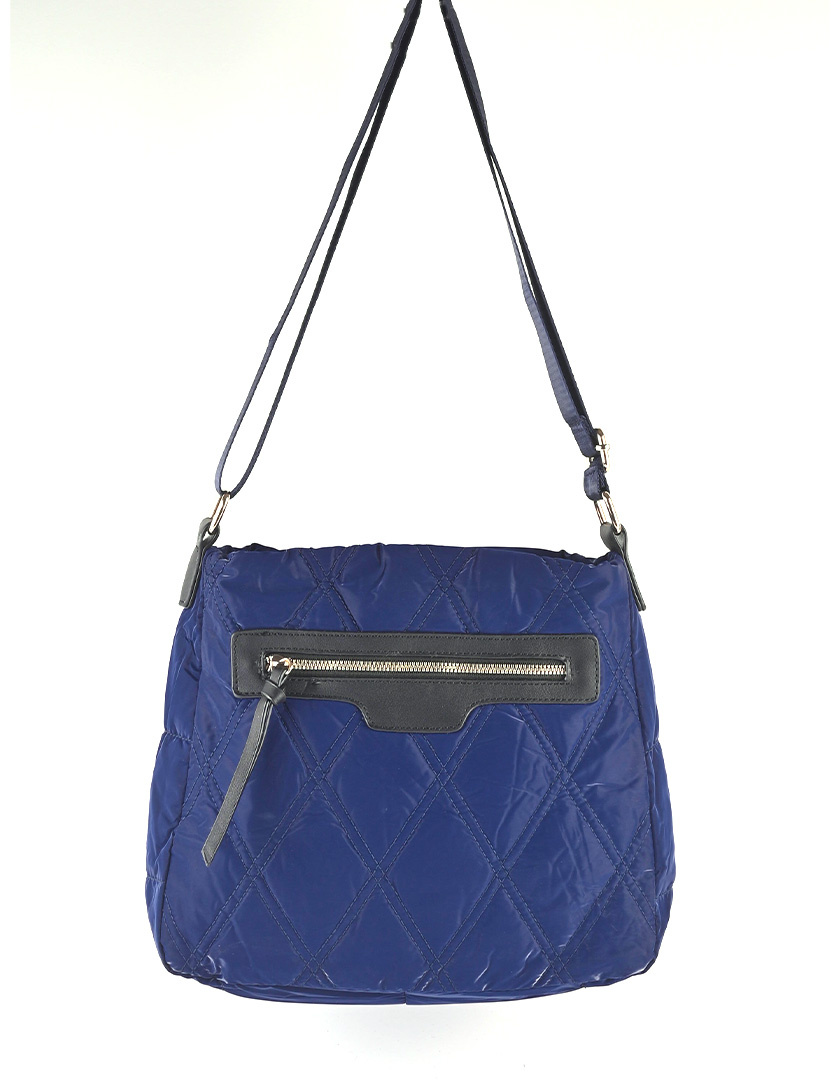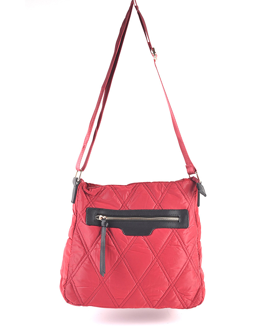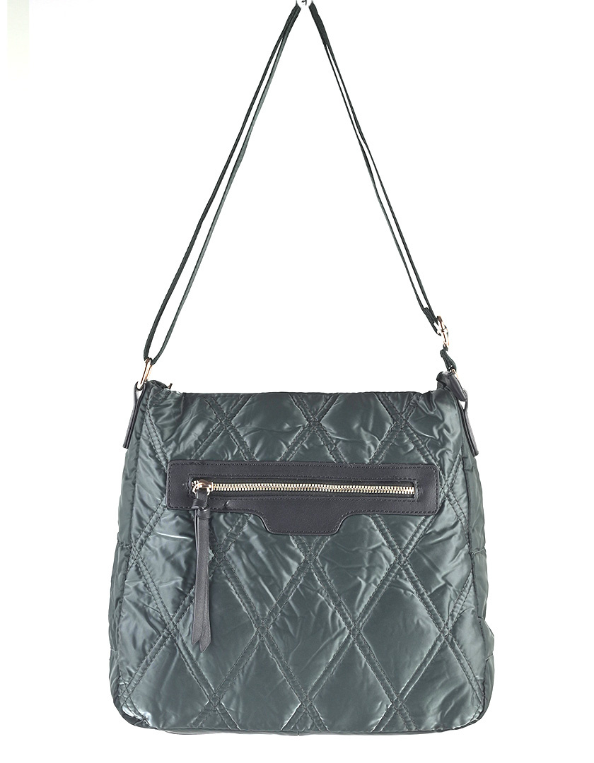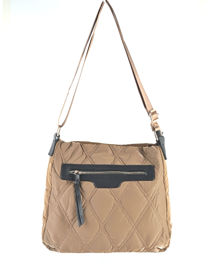• Stijlvolle schoudertas van kunstleer en nylon, voorzien van ritsvakken aan zowel de voor- als achterkant voor extra opbergruimte.
