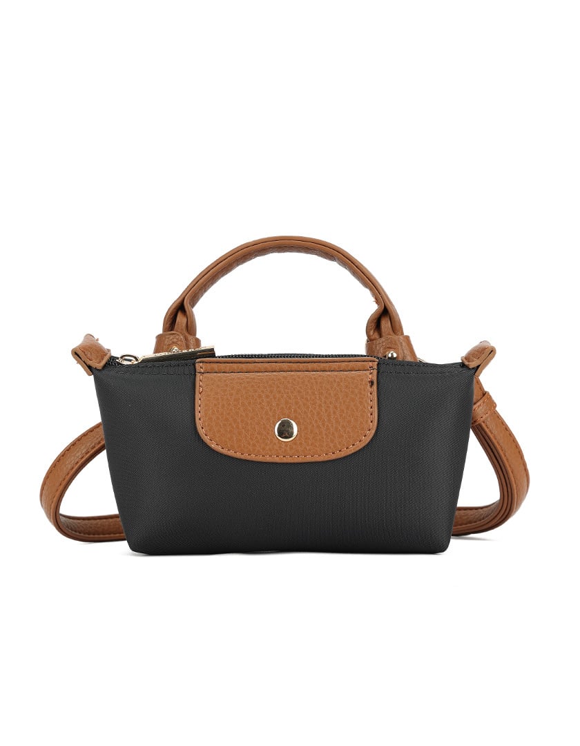 • Compacte en stijlvolle tas met canvas en bruine kunstleren details.