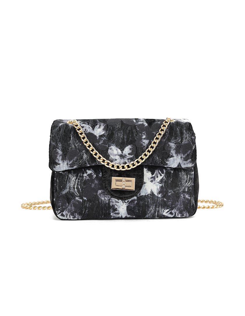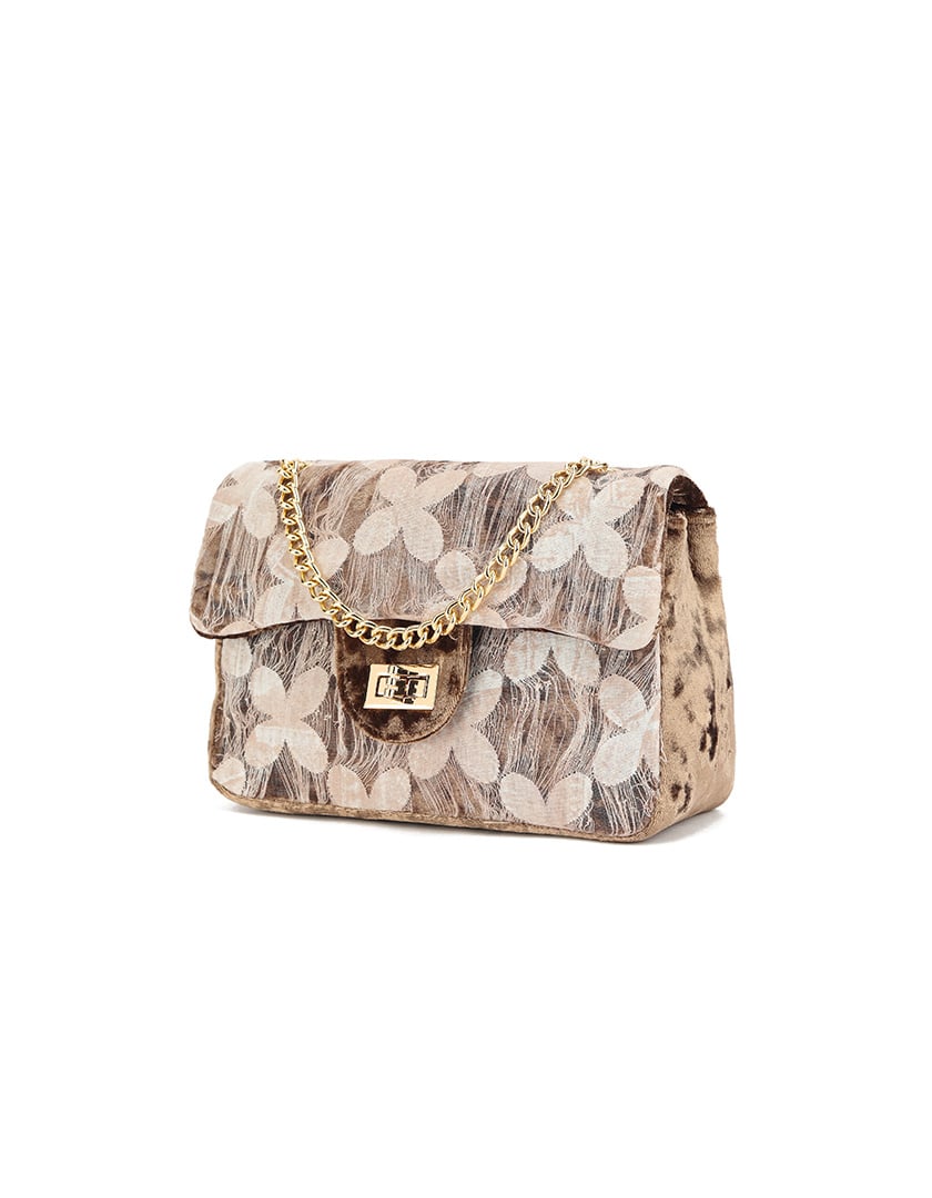 • Kunstlederen schoudertas met een draaisluiting. De schoudertas heeft een print met pailletten