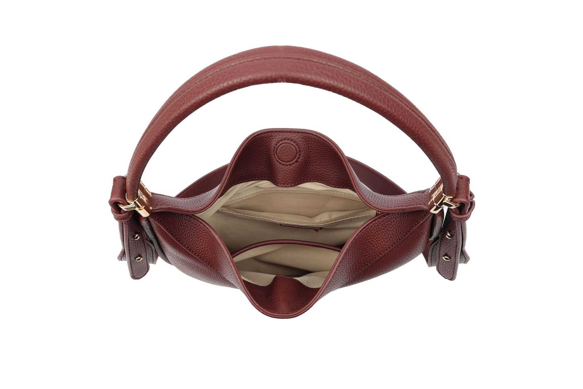 Stijlvolle leren schoudertas van hoogwaardig echt leer. Voorzien van een ruim hoofdvak met trekkoordsluiting en een verstelbare schouderriem. Perfect voor dagelijks gebruik.