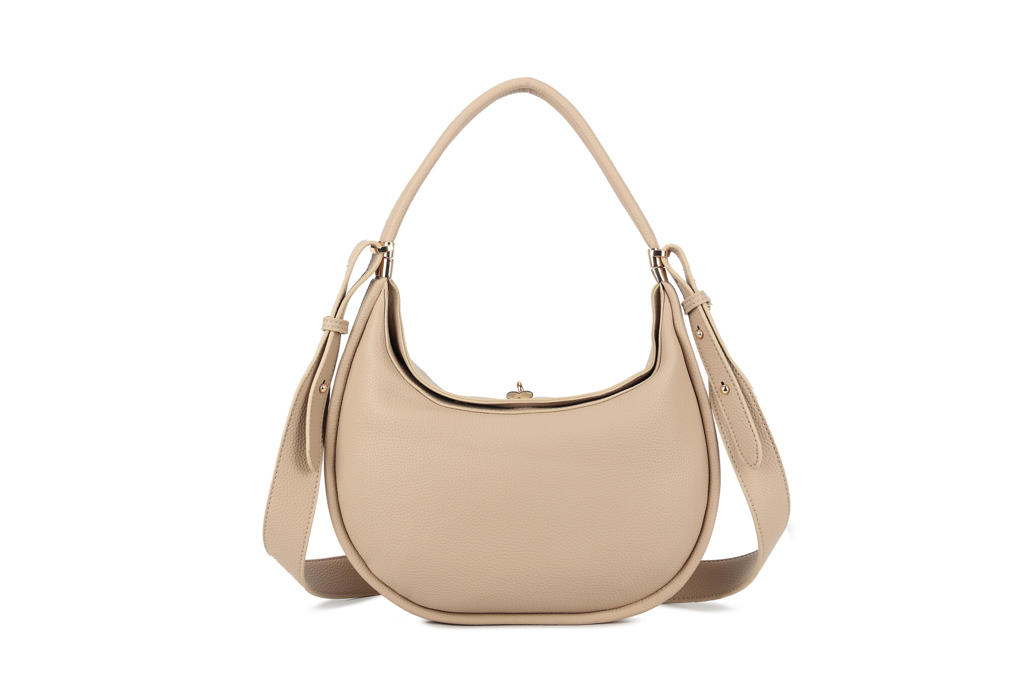 Chique schoudertas met korrelige textuur. De tas heeft een bijzondere sluiting: Deze vouwt namelijk aan de bovenkant, wat het net dat extra beetje feel geeft.