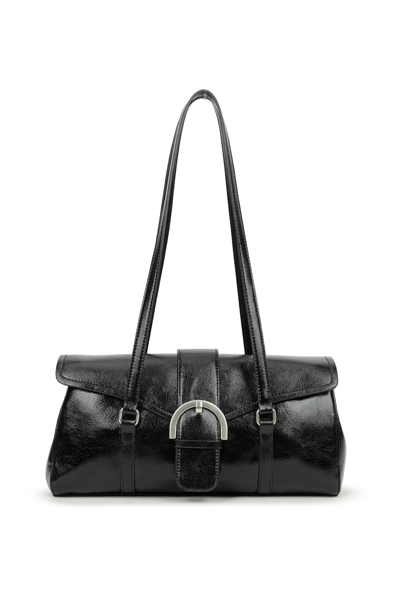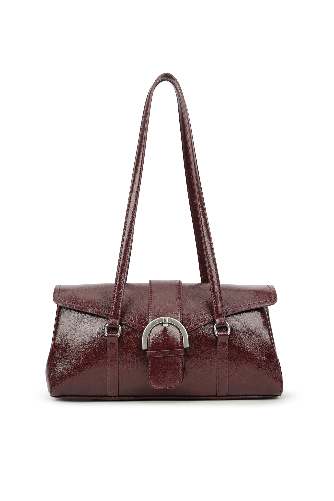 Elegante kunstleren schoudertas van Giuliano met zilverkleurige gesp. Verkrijgbaar in bordeaux, zwart, bruin en olijfgroen. Compact en stijlvol met meerdere vakken. Ideaal voor een chique en georganiseerde look.