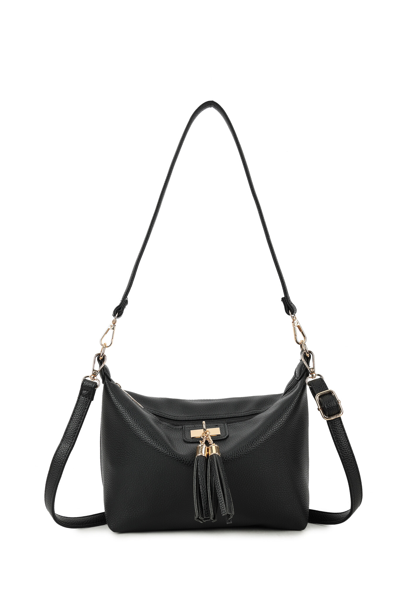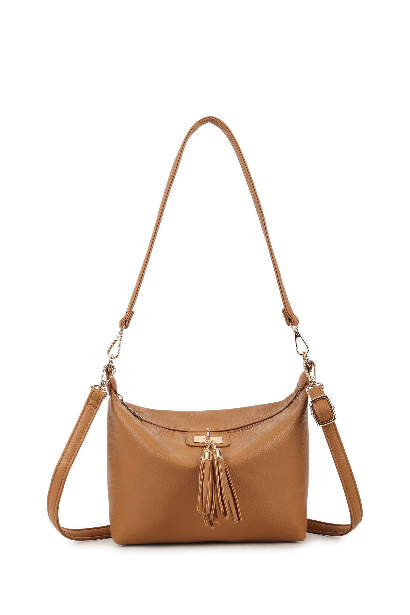 • Stijlvolle kunstleren schoudertas met gouden details en speelse tassels. Licht, elegant en ideaal voor dagelijks gebruik. Met verstelbare band, meerdere vakken en rits. Afmetingen: 28 × 20 × 10 cm. Perfect voor elke moderne look.