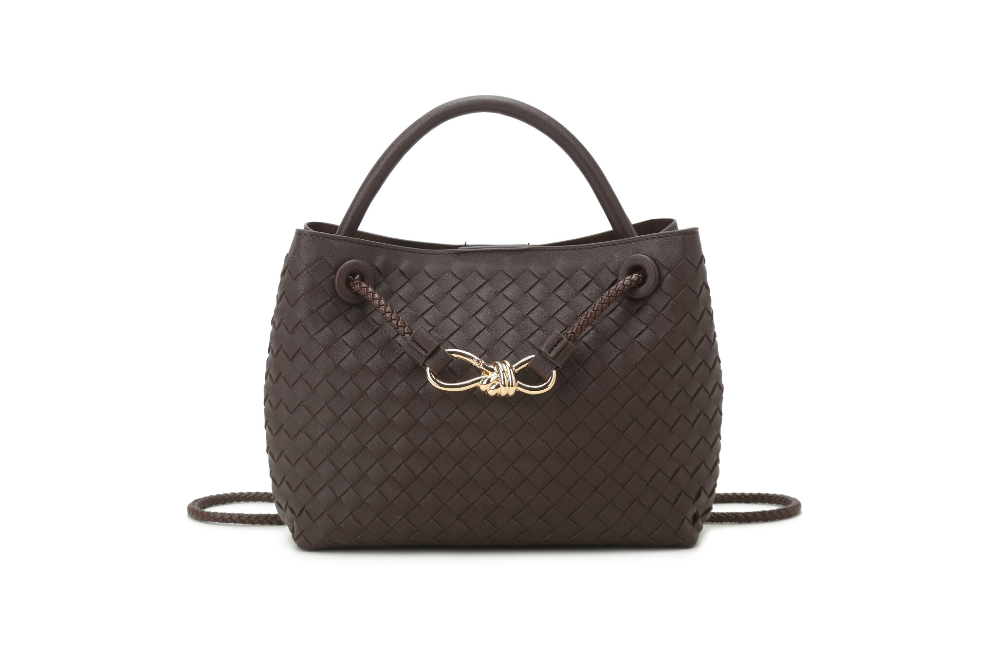 Elegante gevlochten crossbodytas met gouden detail en verstelbare koordsluiting. Compact maar ruim genoeg voor dagelijkse essentials. Stijlvol, lichtgewicht en perfect voor elke outfit. Verkrijgbaar in meerdere kleuren.