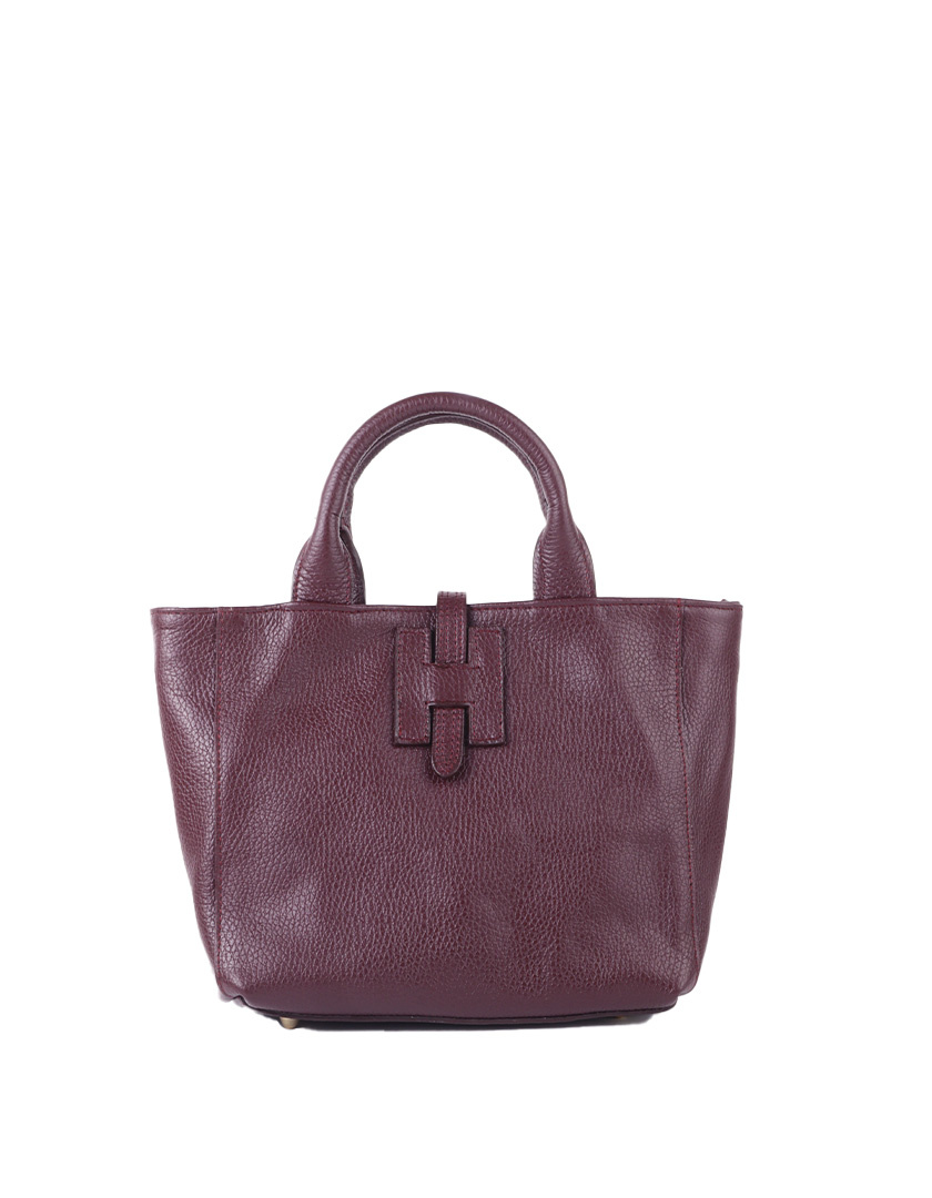 • Lederen handtas met 2 looks: De bovenste hoeken kunnen naar binnen worden gevouwen d.m.v. een karabijnsluiting, waardoor de hoeken aan elkaar vast zitten. Tevens is er een ritssluiting aan de bovenkant, en de H-sluiting, die met drukknop sluit achterop.
