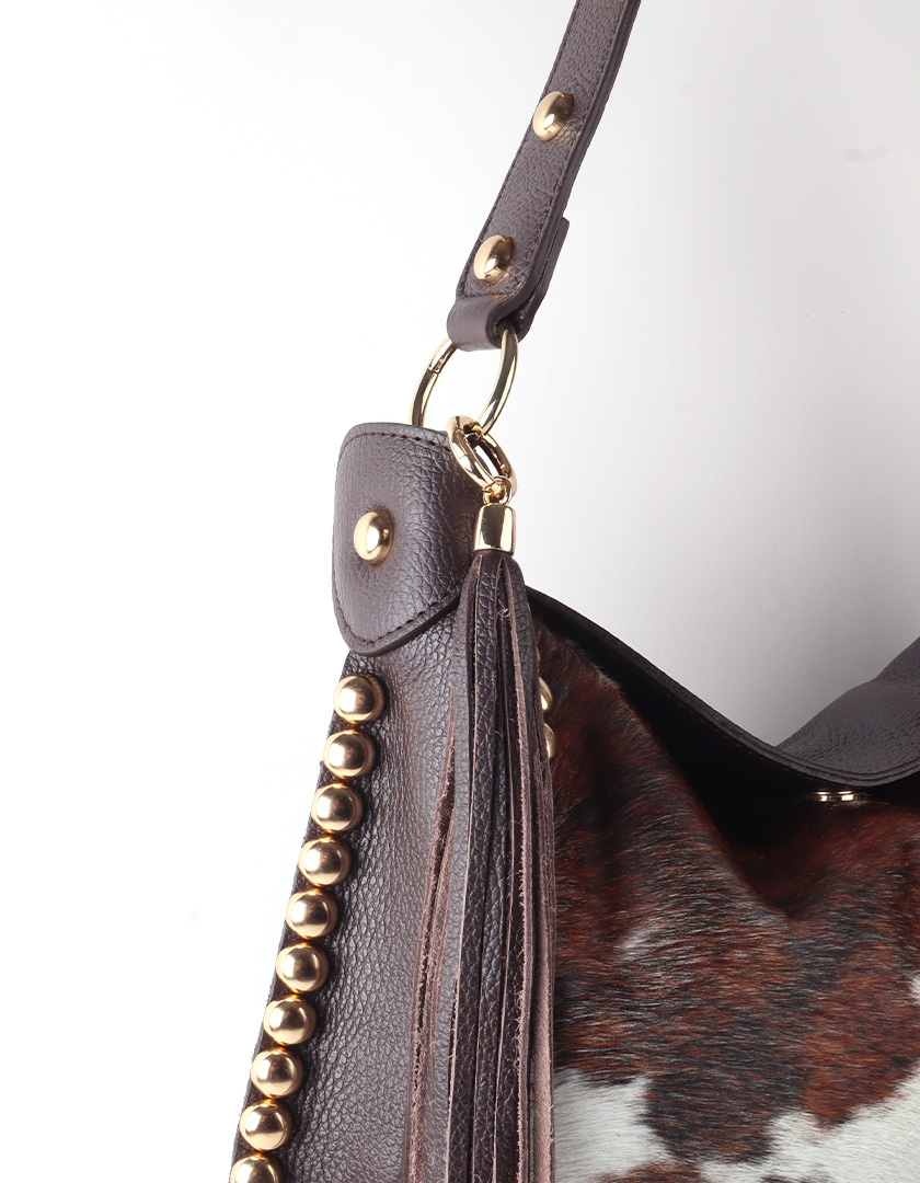 • Lederen western hobo-tas met studs, franjes en luxe koeienhuidlook. Gemaakt van hoogwaardig leder met binnenvak met rits. Een stijlvolle eyecatcher voor elke dag.