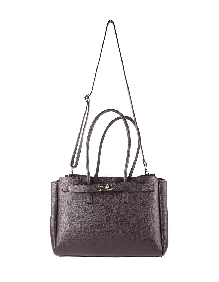 • Handtas van suède met leren details heeft een elegante uitstraling. De tas heeft twee stevige handvatten en een decoratieve leren band met goudkleurige sluiting aan de voorzijde.