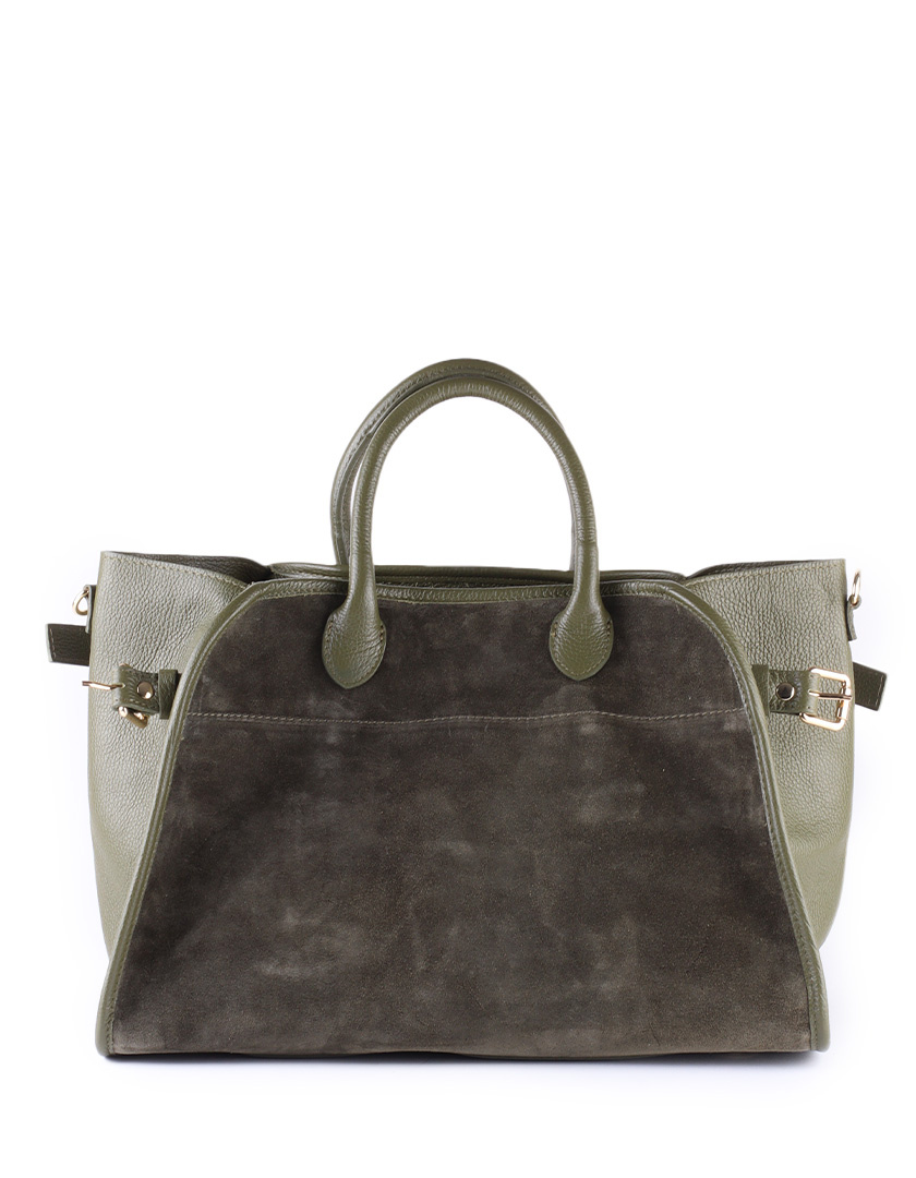 • Stijlvolle handtas van luxe suède met lederen zijkanten en handvaten. Een tijdloos en praktisch accessoire voor elke gelegenheid.
