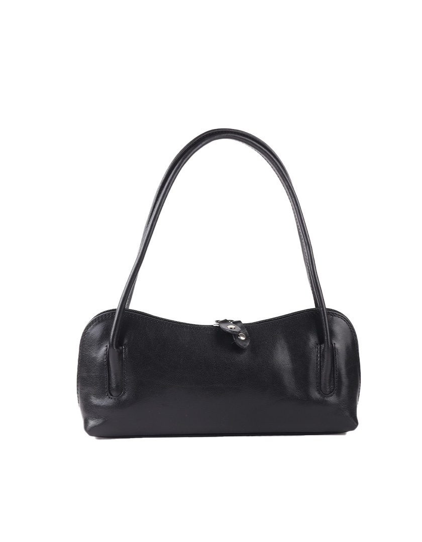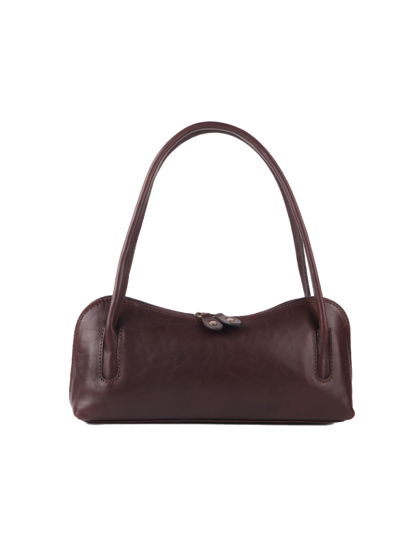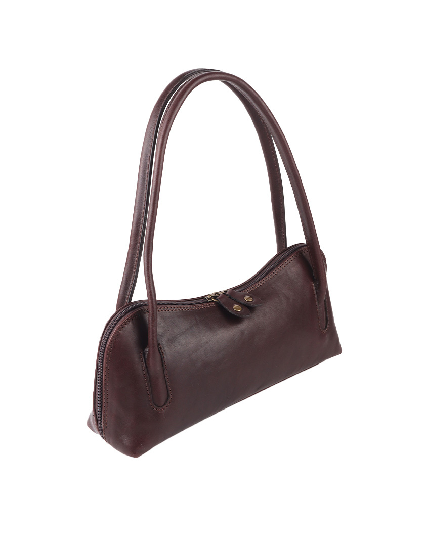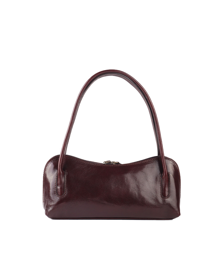Mooie lederen handtas met glimmende coating met reliëf. De tas sluit met een rits, en heeft nog een extra vakje met rits aan de binnen en achterzijde. Het handvat is verstelbaar waardoor deze ook als schoudertas gedragen kan worden.