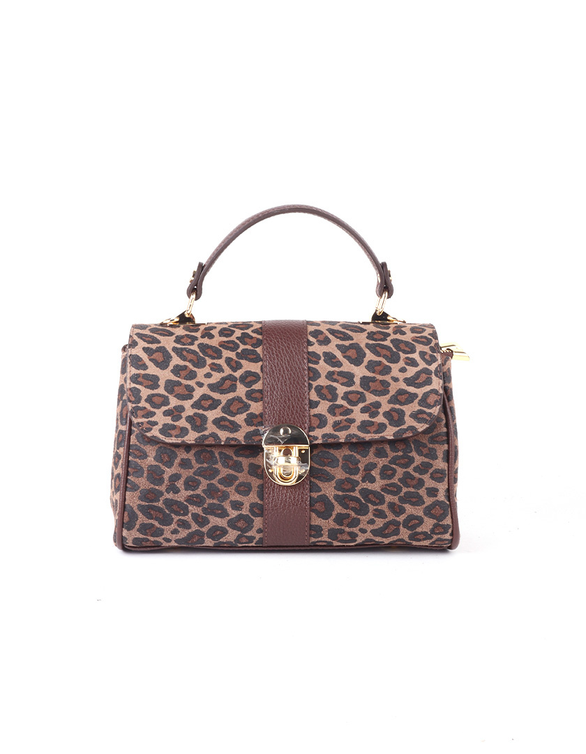 Exclusieve handtas van echt suède leer met luipaardprint. Luxe afwerking met goudkleurige sluiting en dubbele ritsvakken. Elegant en stoer tegelijk, ideaal voor elke dag.