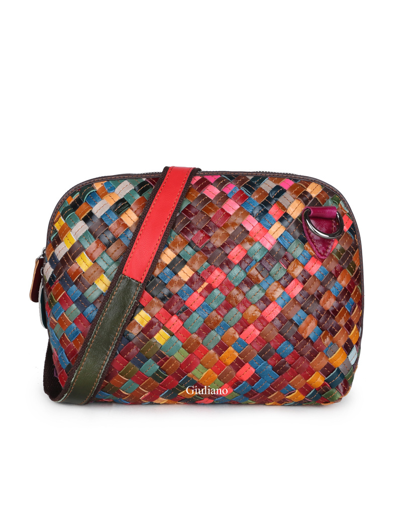 • Lederen schoudertas gemaakt van gevlochten leer. Door de verschillende kleuren leer is iedere tas uniek.