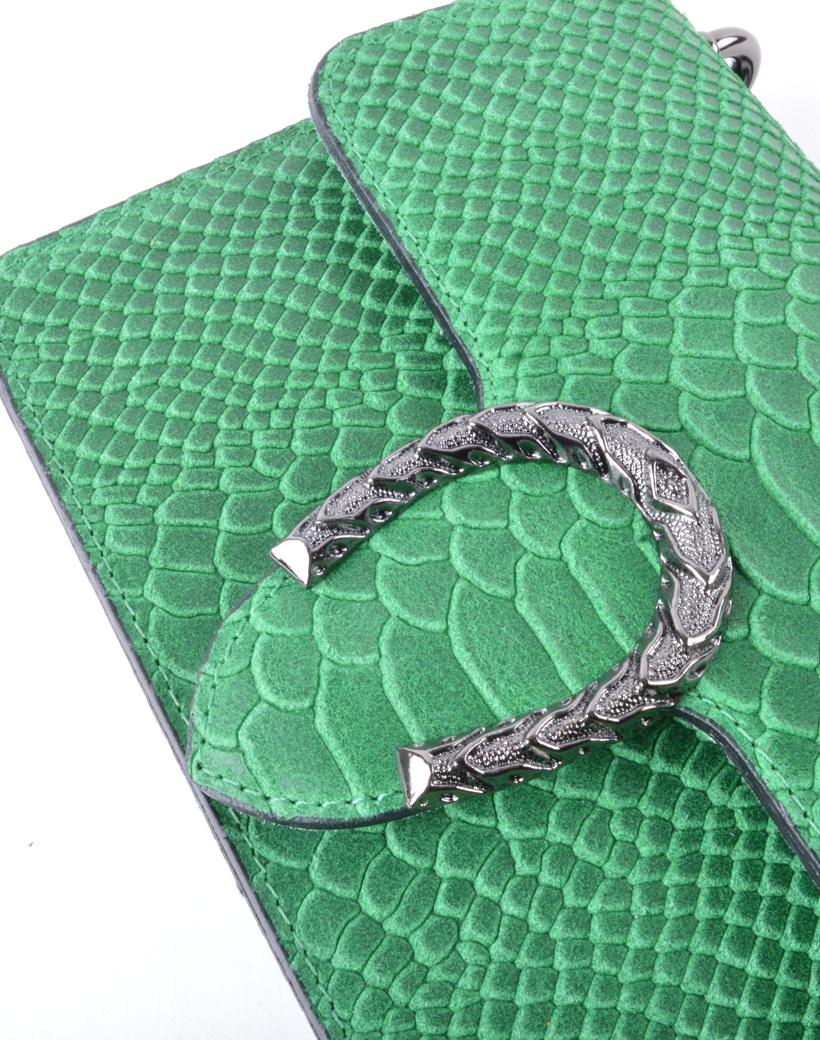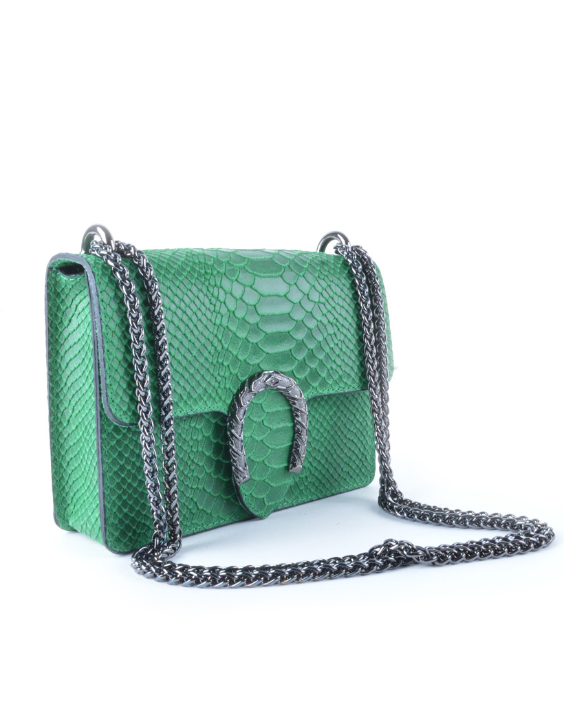 • Lederen schoudertasje met hoefijzer op de voorzijde. Het tasje sluit met een magneetsluiting en heeft een vakje met rits aan de binnenzijde. De schouderband is van een stoere ketting.