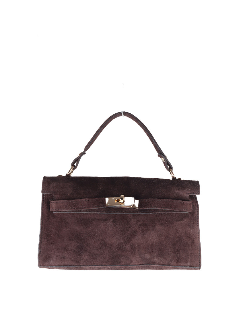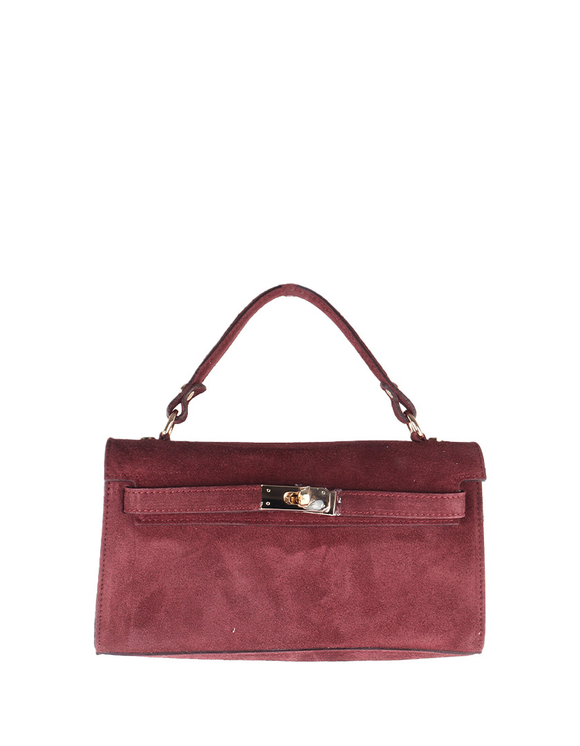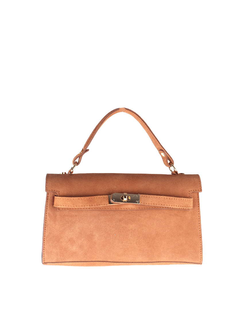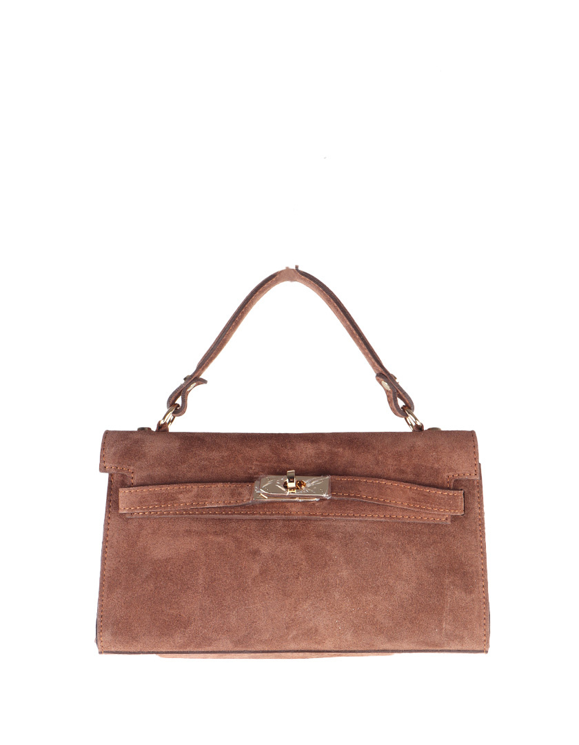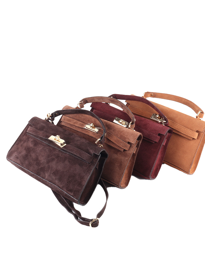 • Elegante handtas van echt suède leer met goudkleurig draaislot. Luxe uitstraling, compact formaat en verstelbare schouderband. Verkrijgbaar in meerdere stijlvolle kleuren.