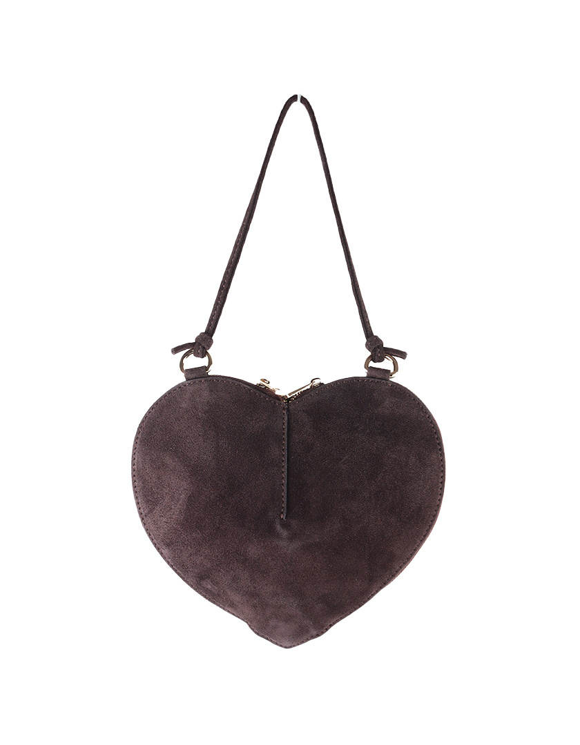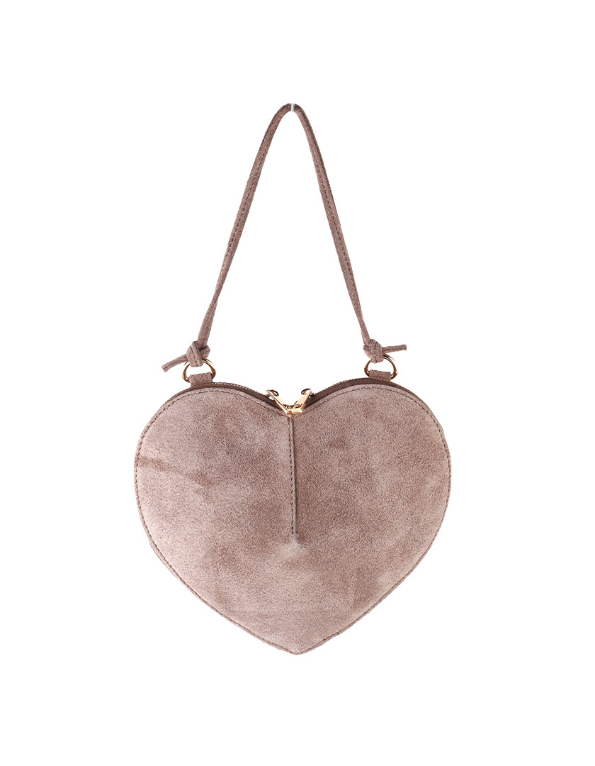 Liefde op het eerste gezicht! Suède hartvormige tas met goudkleurige rits, rode voering en verstelbare band. Zacht, speels en stijlvol voor elke gelegenheid.