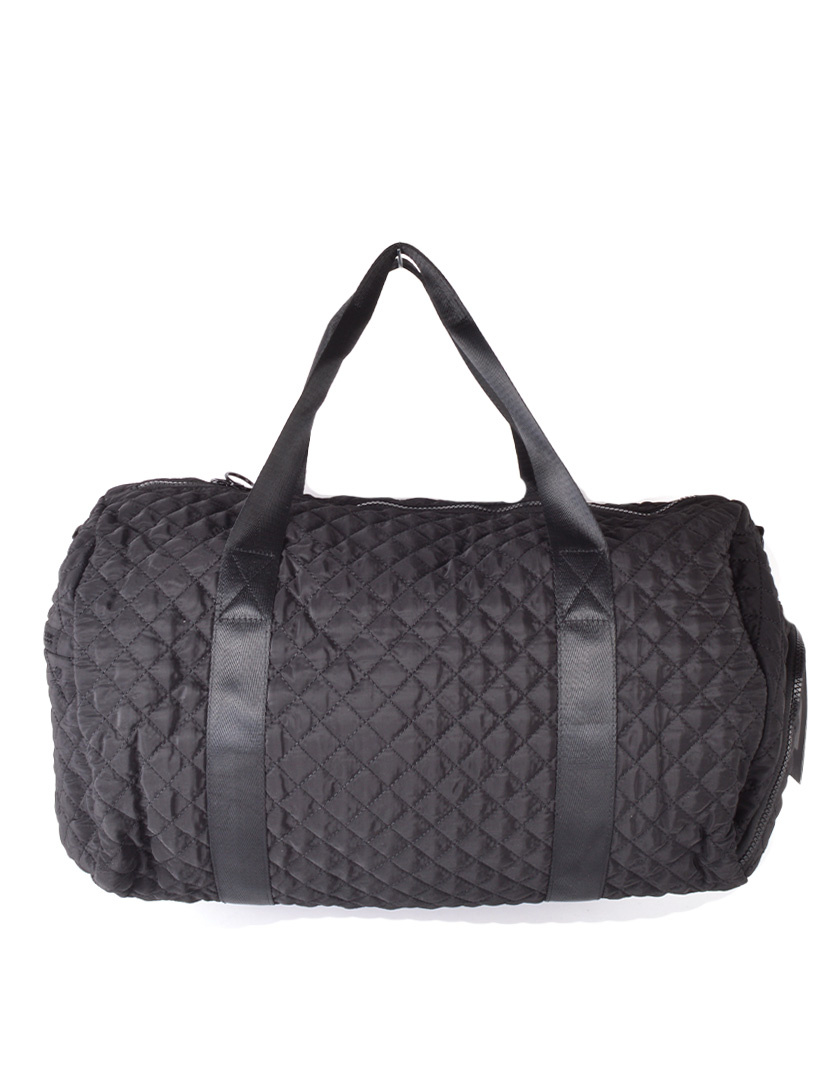 • Nylon weekendtas met gestikte details. Voorzien van handige zij- en binnenvakken, waaronder een rechter zijvak met waterdichte voering, ideaal voor schoenen. Aan de achterkant zit een vak waarmee je de tas over het handvat van je koffer kunt schuiven.