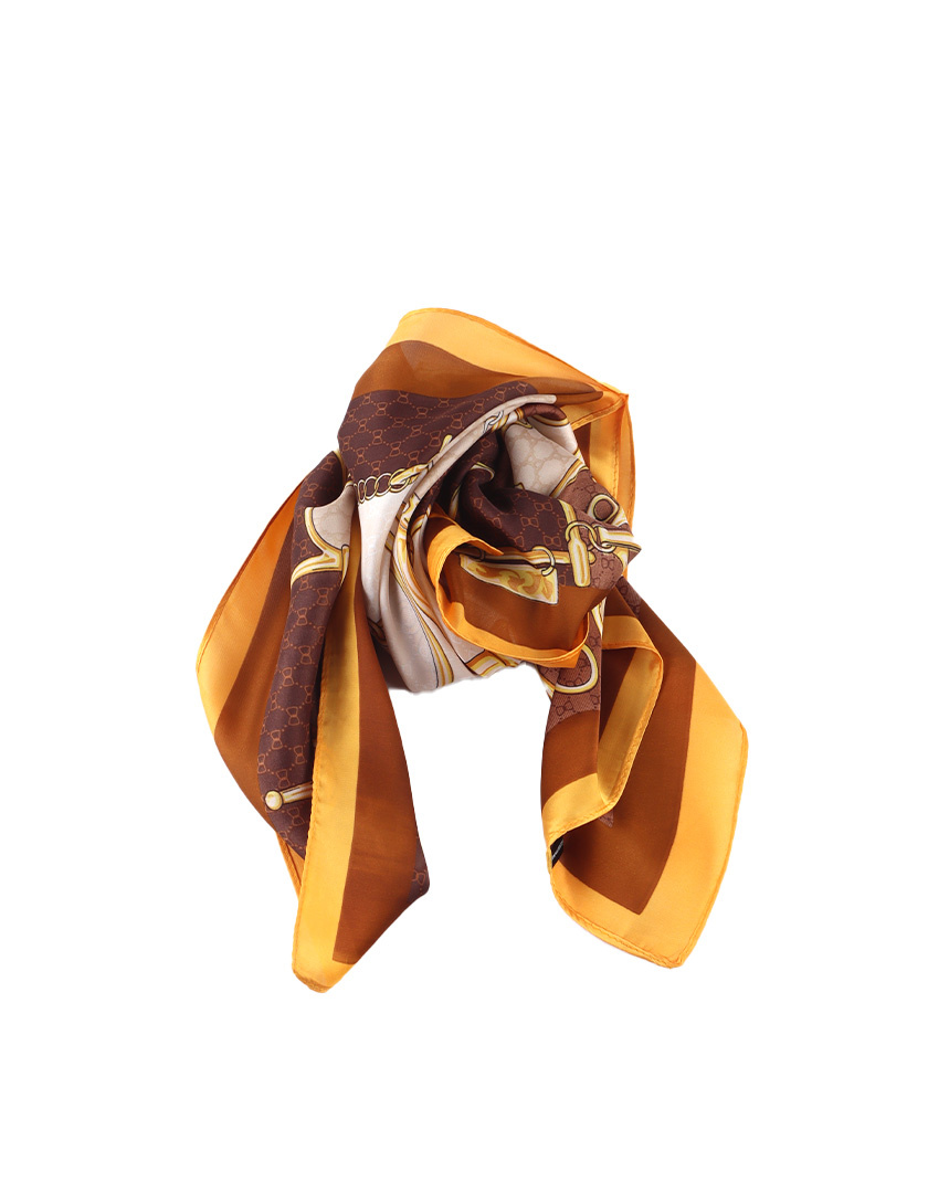 • Stijlvolle satijnen look sjaal met warme tinten en een stijlvolle print.