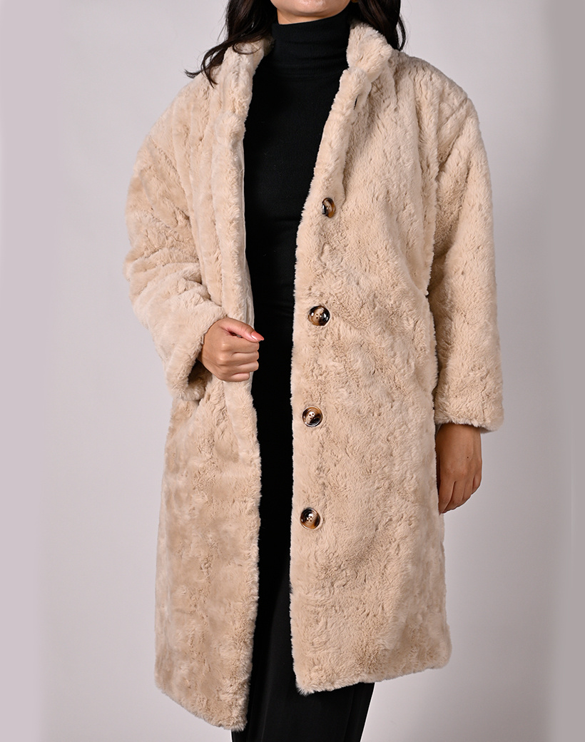 • Mooie teddy jas met knoopsluiting. De jas is one size en de model draagt maat 36/38