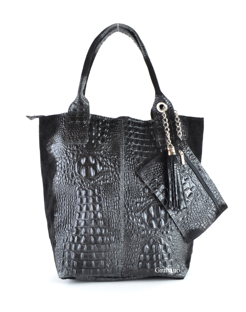 • Suede kroko shopper. This shopper has a zipper and has a cotton lining.