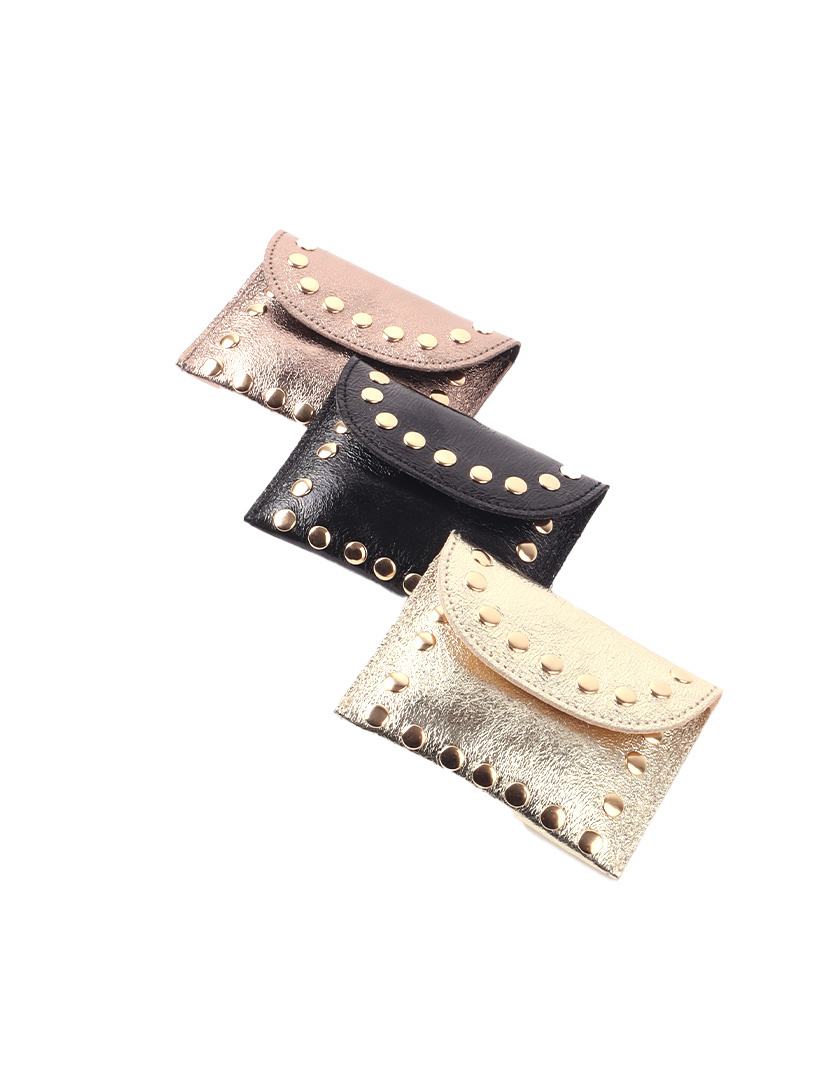 • Mini leather metallic purse/wallet with studs. This mini wallet has a magnetic closure