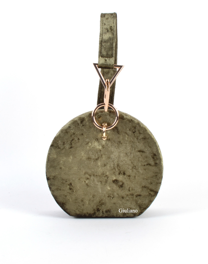 • Round evening bag made of velvet. The bag closes with a magnetic closure.