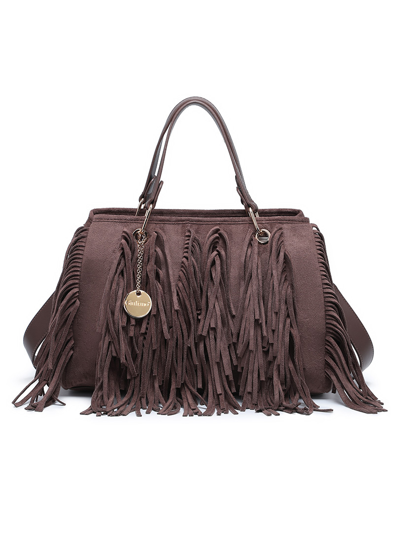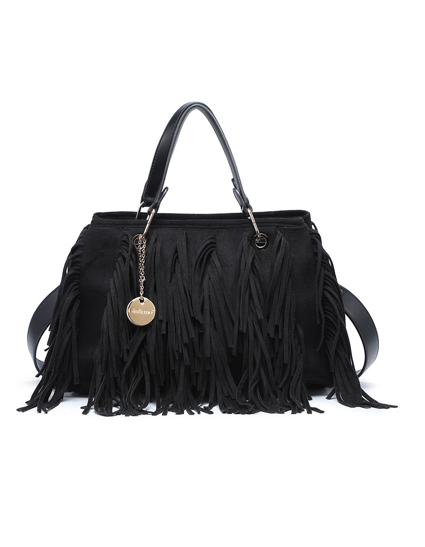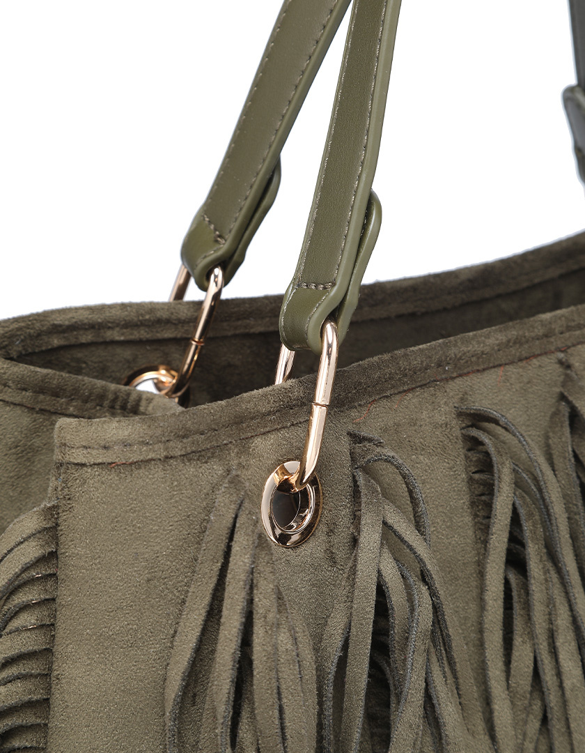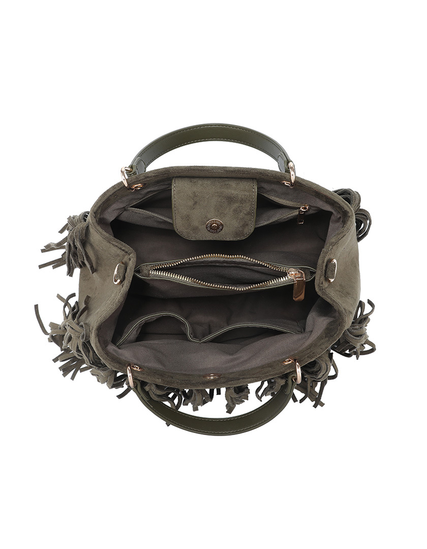 • Trendy handbag made of faux suede with playful fringes. This bag gives your outfit a unique boho look and is perfect for everyday use thanks to its practical size.