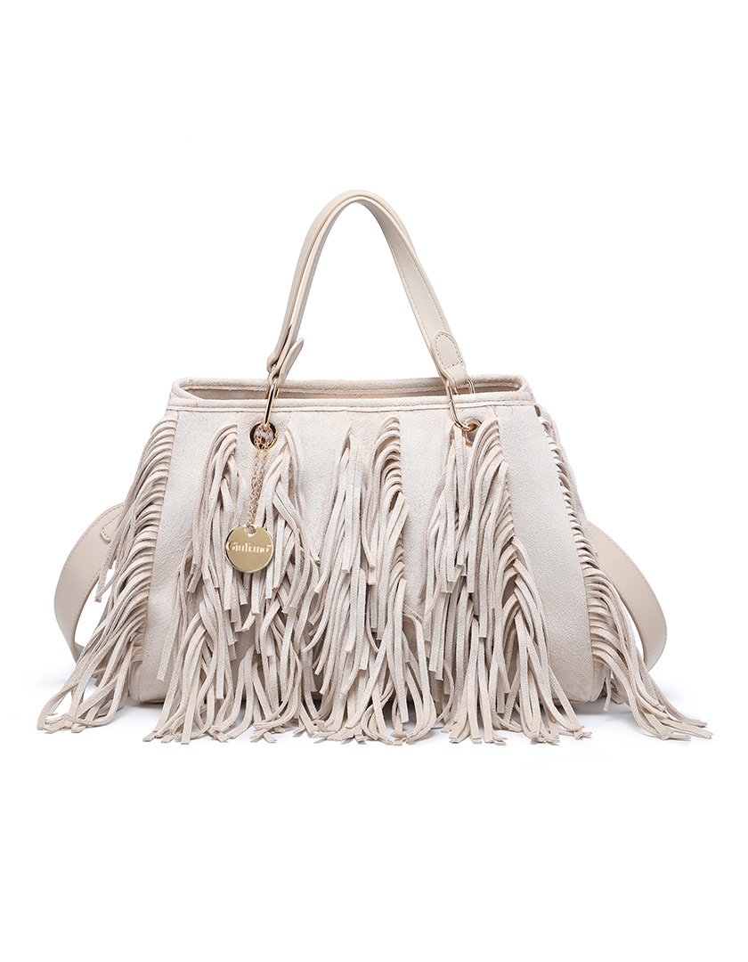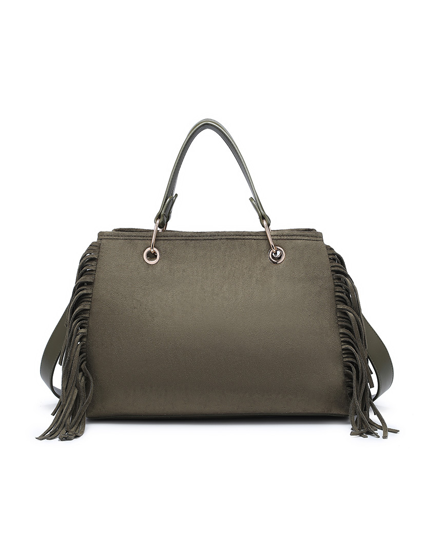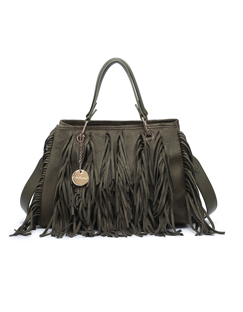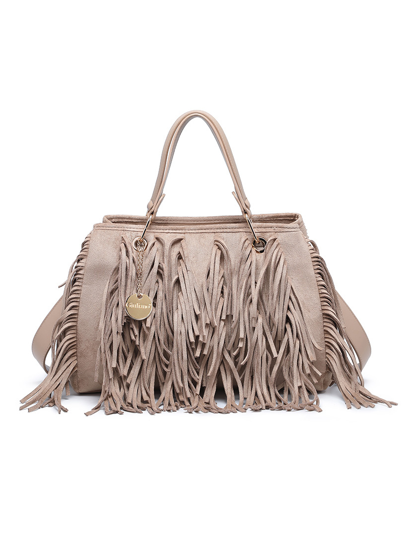 • Trendy handbag made of faux suede with playful fringes. This bag gives your outfit a unique boho look and is perfect for everyday use thanks to its practical size.