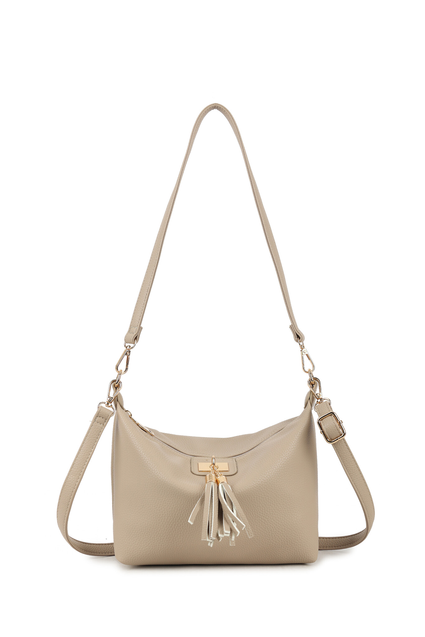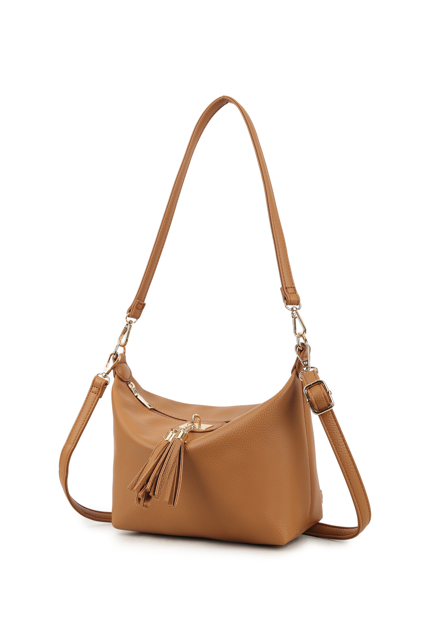 • Stylish faux-leather shoulder bag with gold accents and playful tassels. Lightweight, elegant and perfect for daily use. Features an adjustable strap, multiple pockets and zipper closure. Size: 28 × 20 × 10 cm. A chic everyday essential.