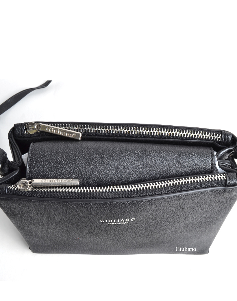 • Artificial shoulder bag, on the outside are 2 compartments with zipper. In the middle are 3 compartments, the middle one with zipper falls over these compartments, a flap with magnetic closure.