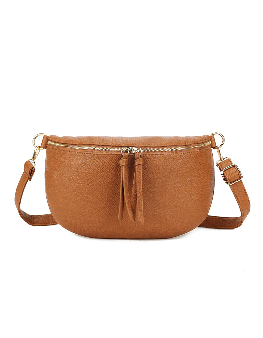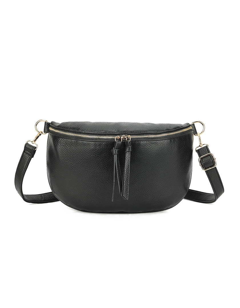 • Stylish and trendy faux leather waist bag, available in various colors. The bag features an additional back pocket for extra storage convenience.