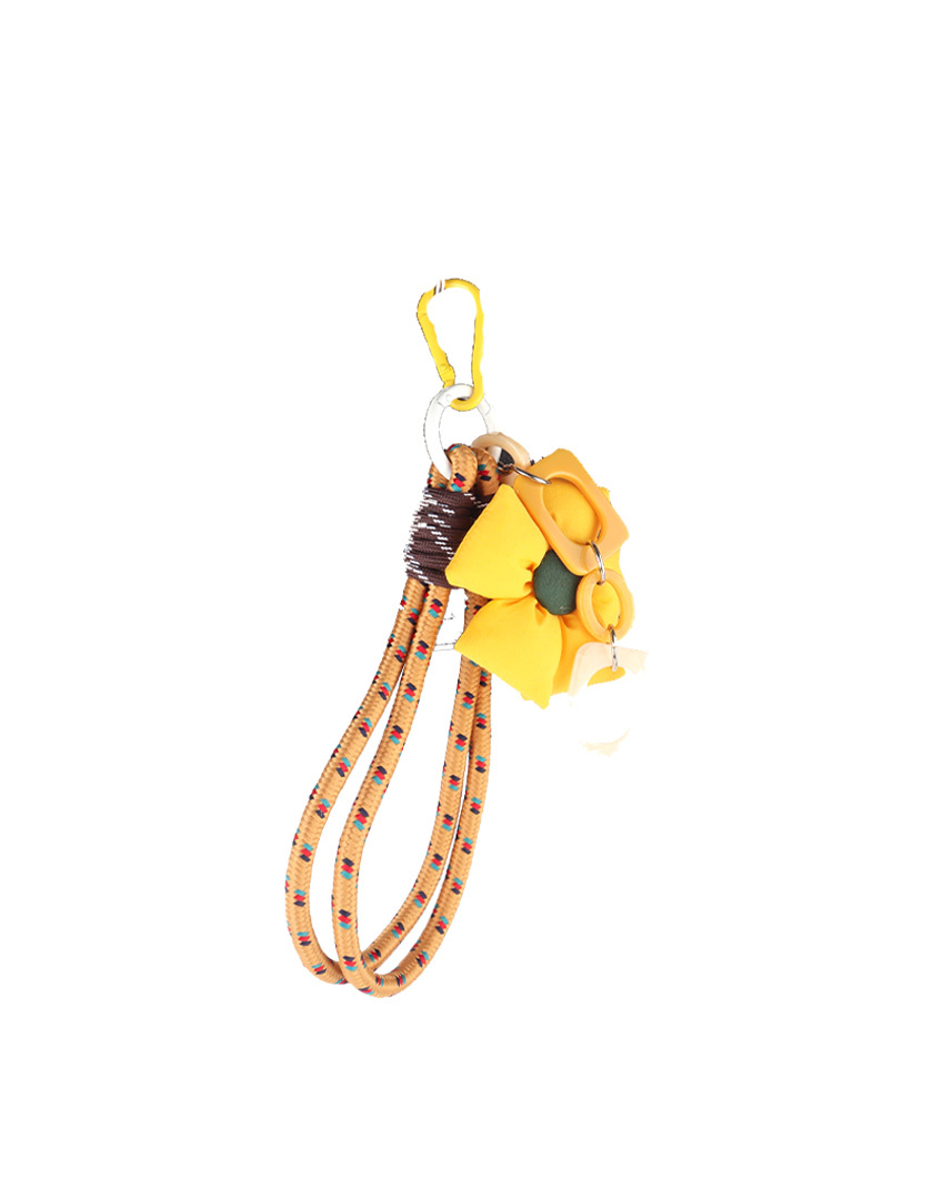 • Decorative bag charm model with braided cords and playful flower detail, finished with a sturdy clip. Perfect for adding a unique, cheerful accent to bags or keys.