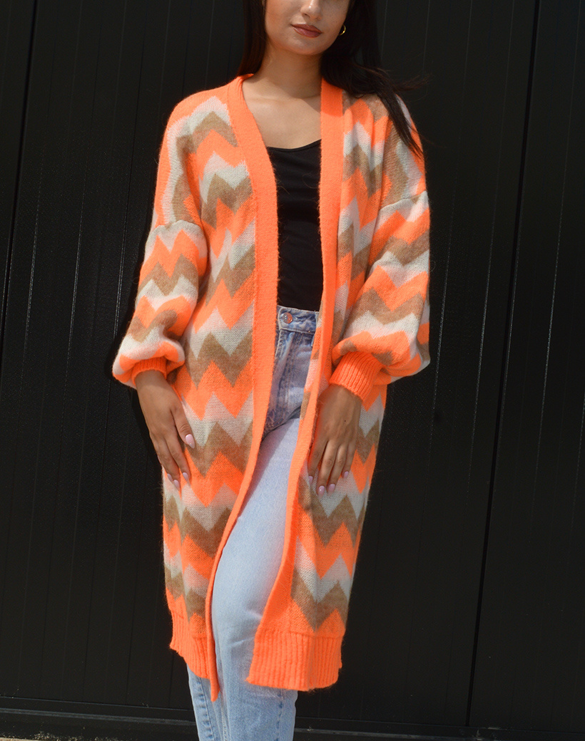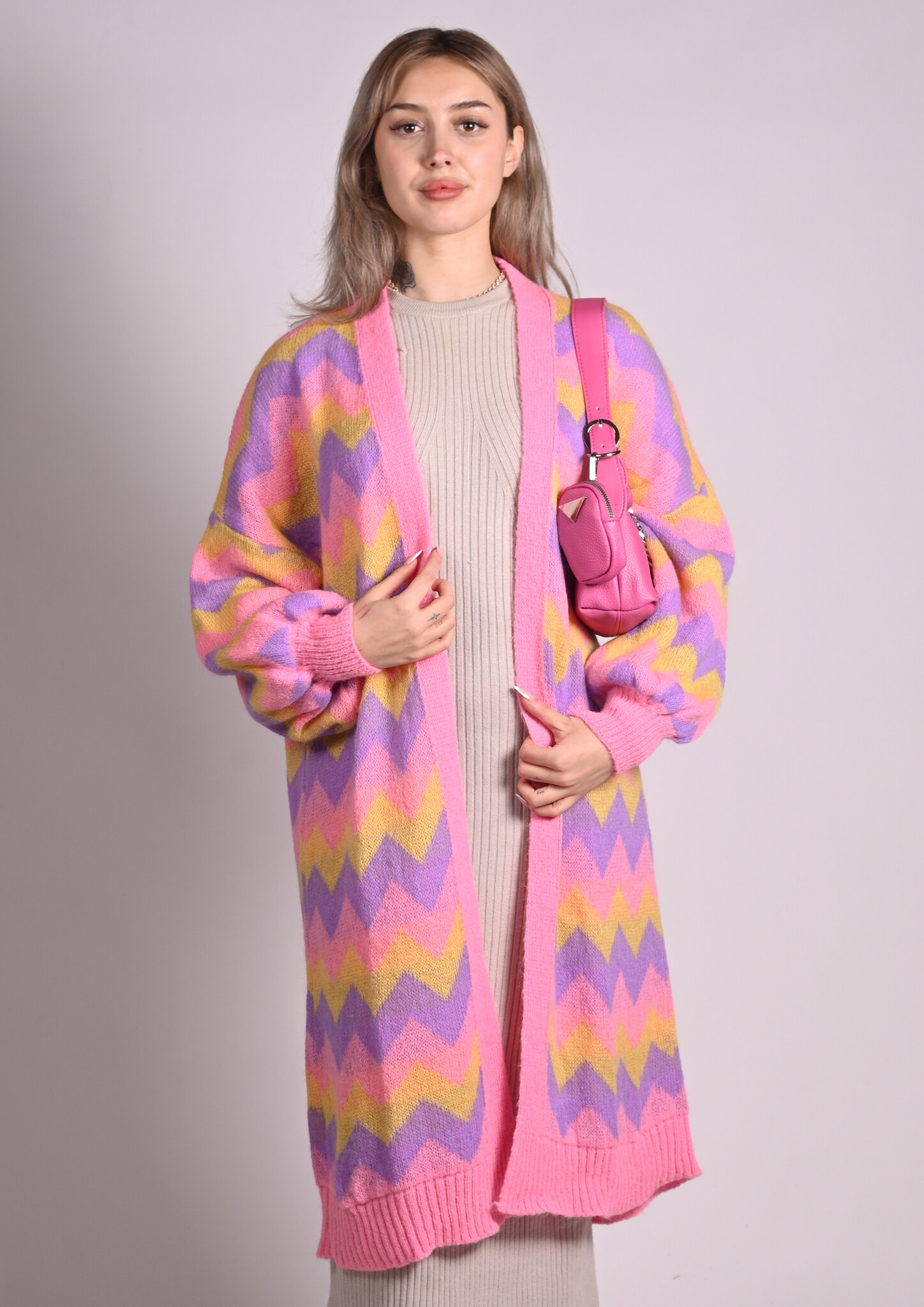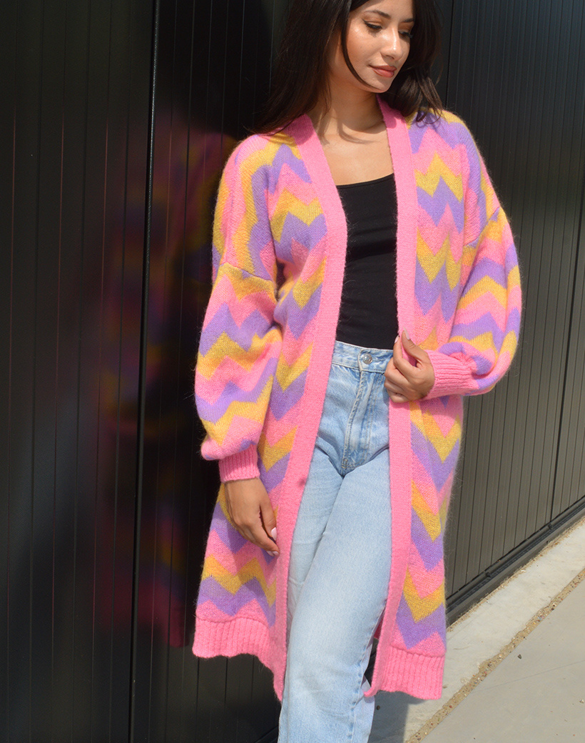 • Oversize cardigan with zigzag pattern. You can wear this cardigan open or with a wrap belt around it.