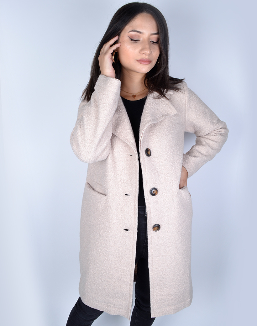 • Coat with 2 pockets, a lapel collar and buttons. The jacket is unlined. Available in 2 sizes S/M and M/L