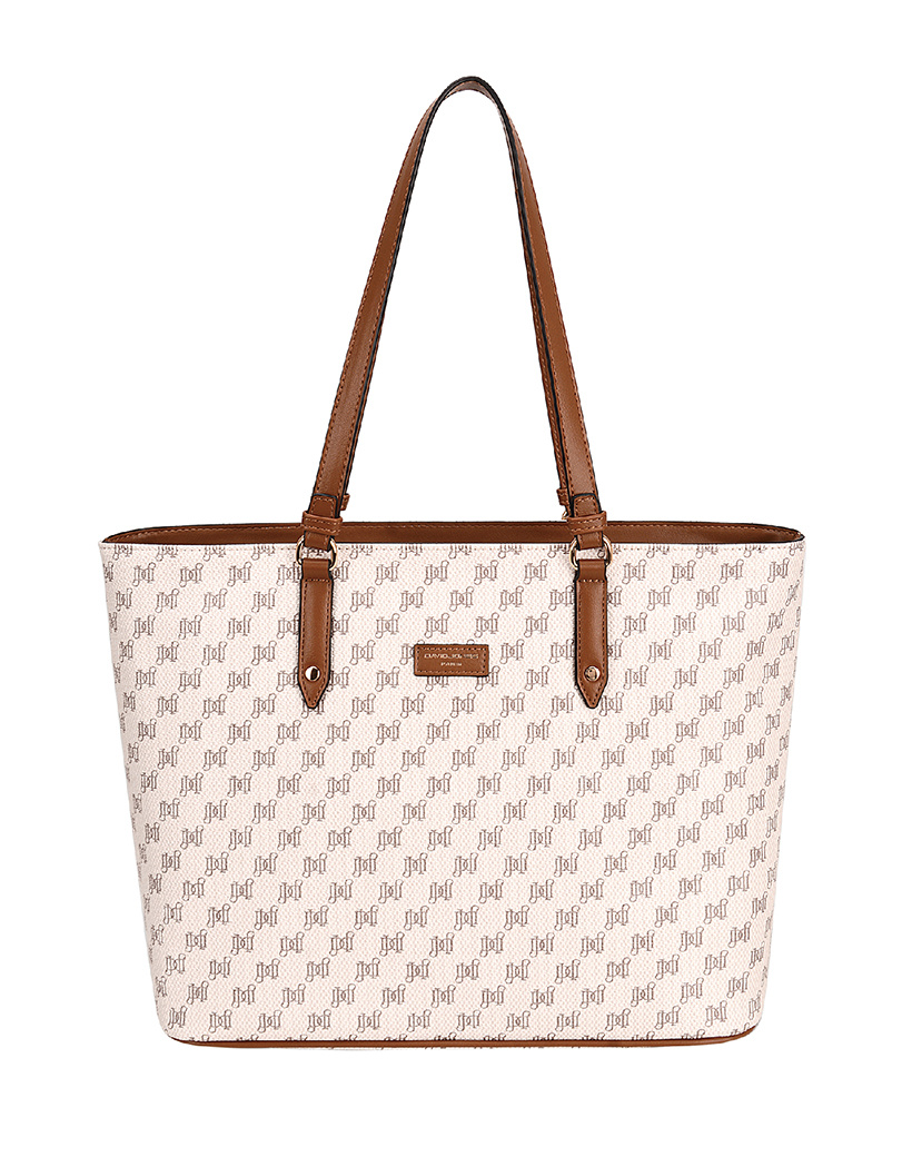 • Big artificial leather handbag by David Jones with a pretty David Jones print. On the back of the bag is an extra compartment with zipper.