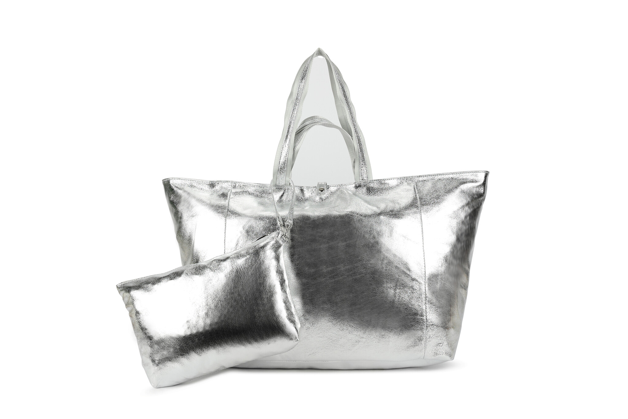 Faux leather handbag with extra inner bag | Metallic | 88050