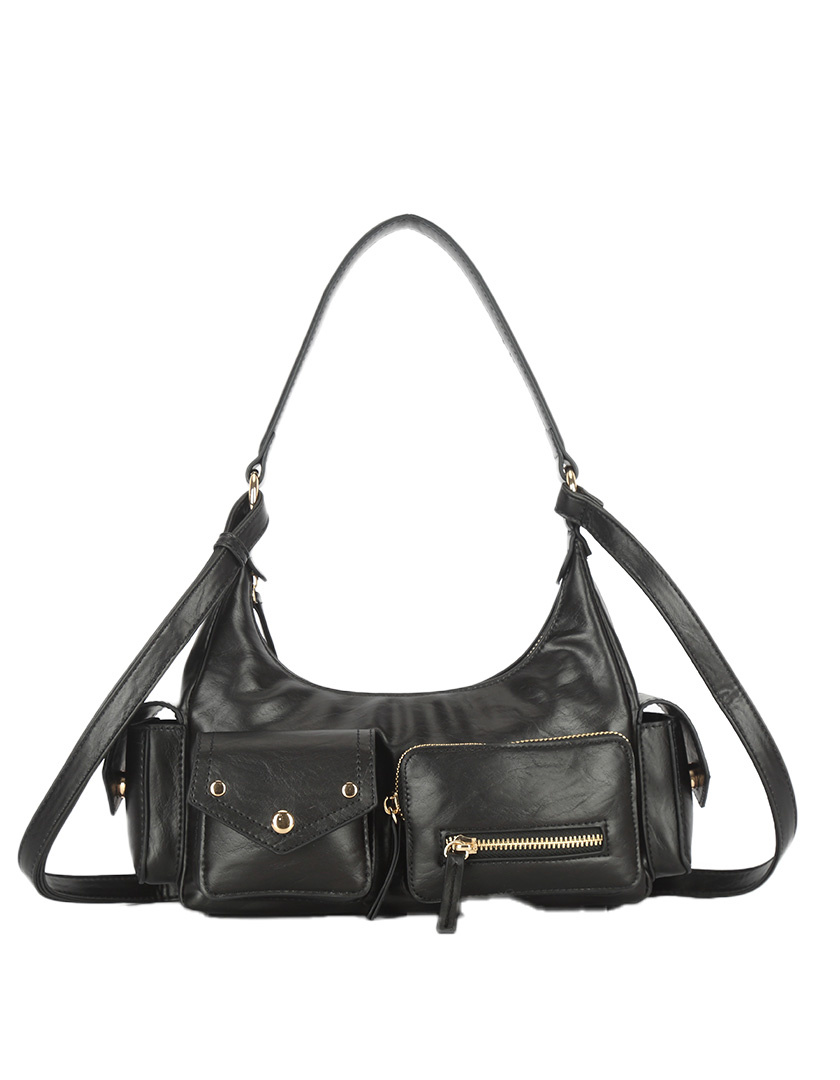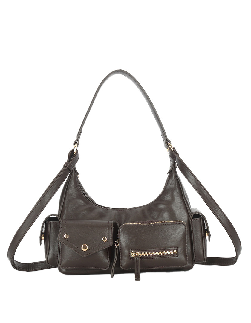 Shoulder bag with a retro look inspired by the '60s and '70s. The gold buckle adds a modern touch that contrasts beautifully with the bag’s classic silhouette. Hidden beneath the buckle is a magnetic closure. The bag features 2 inner and 2 outer pockets.