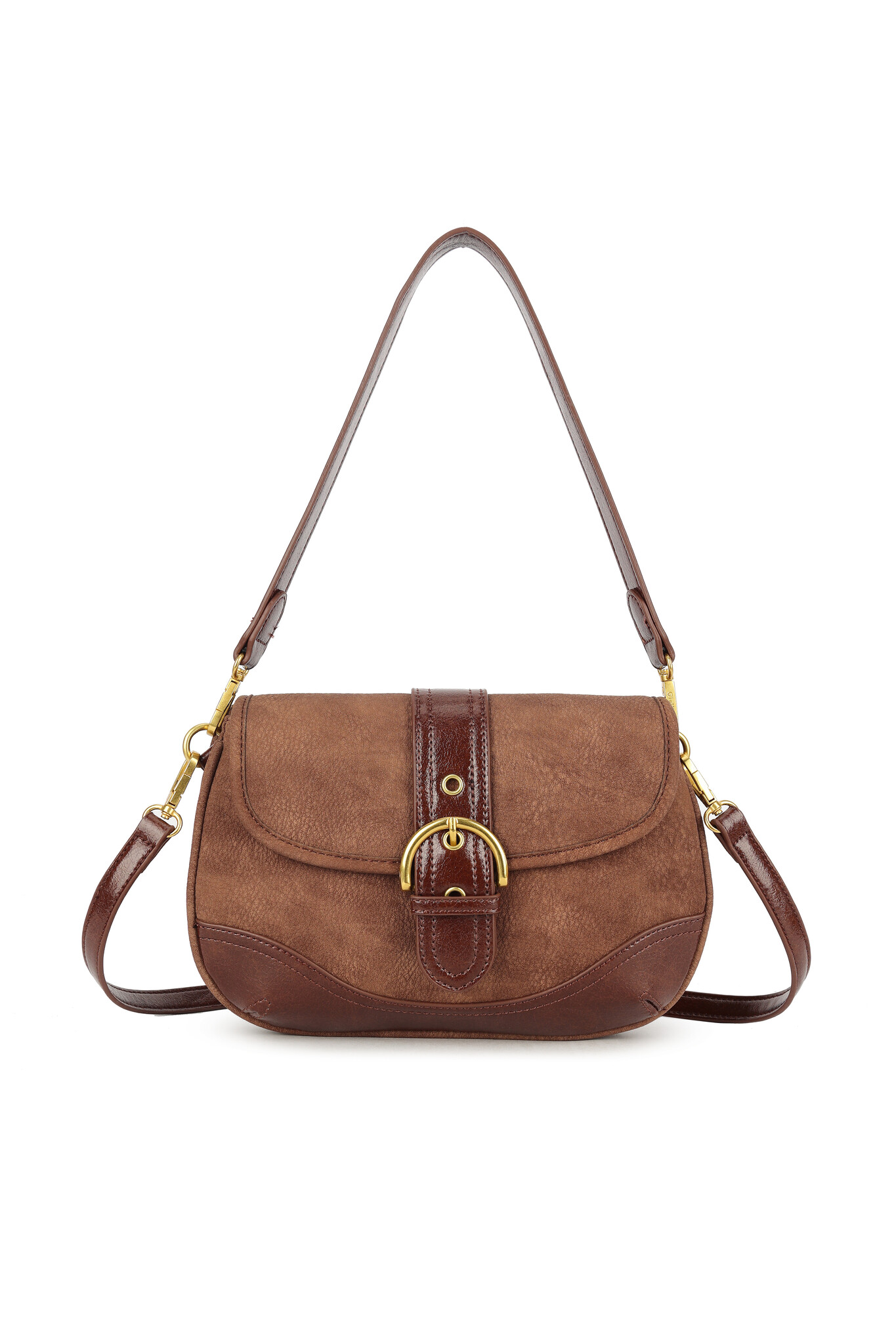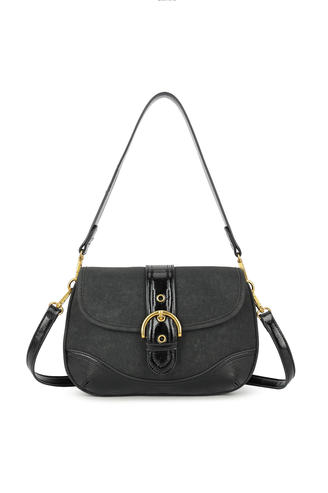 Trendy shoulder bag from Giuliano in taupe, brown or black. Made of faux leather with gold-tone buckle. Compact and elegant, with multiple compartments and detachable shoulder strap. Perfect for daily stylish use.