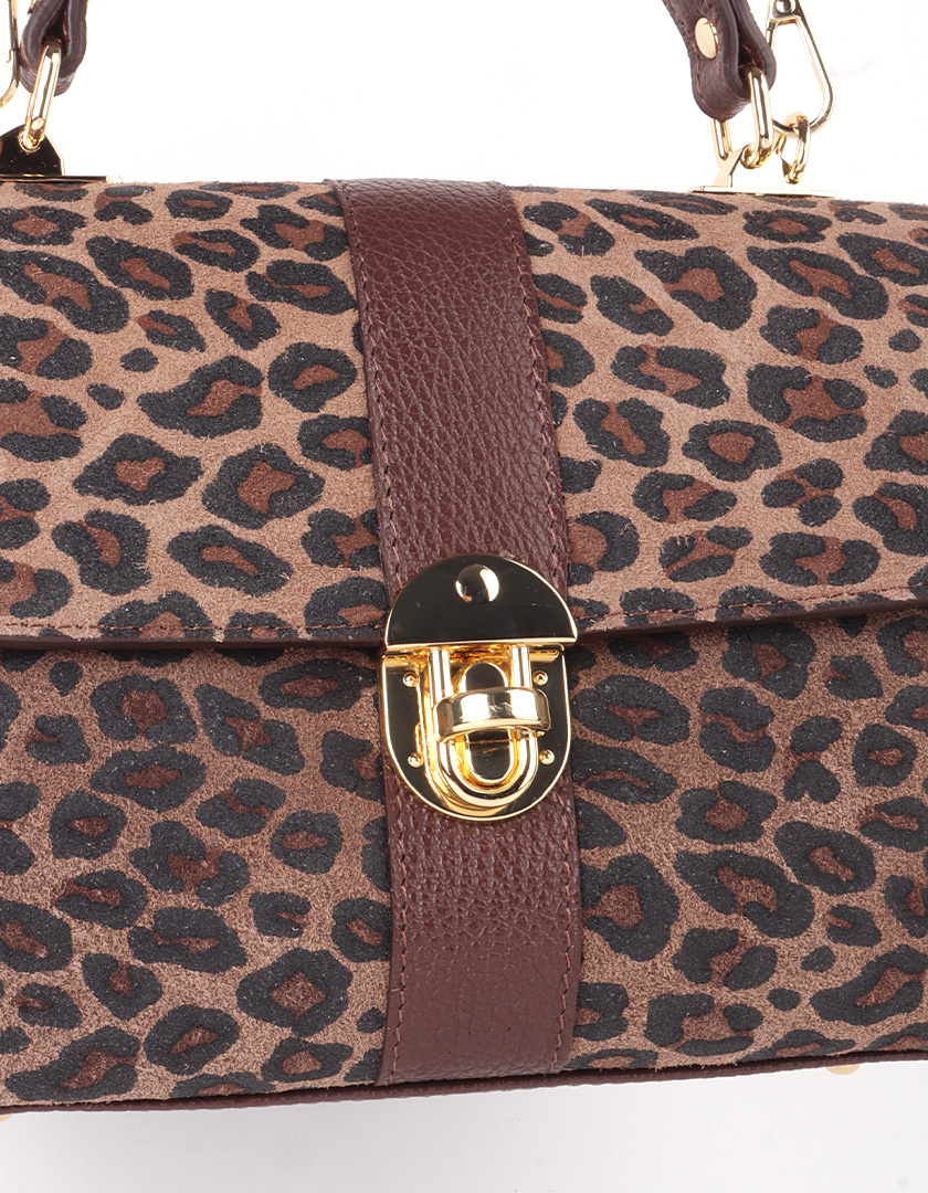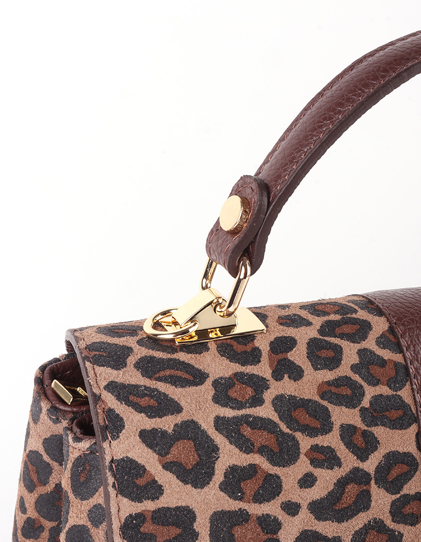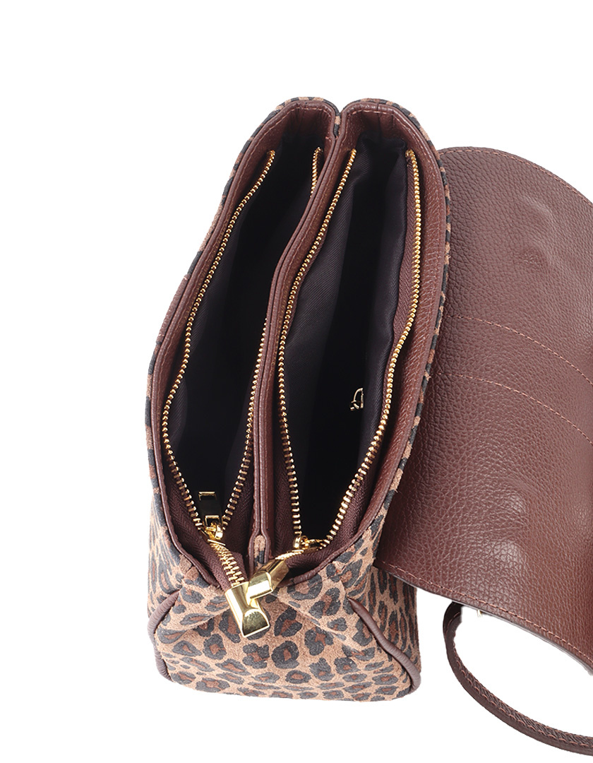 • Exclusive genuine suede leather handbag with leopard print. Luxurious gold hardware and double zipper compartments. Elegant yet bold — perfect for everyday wear.