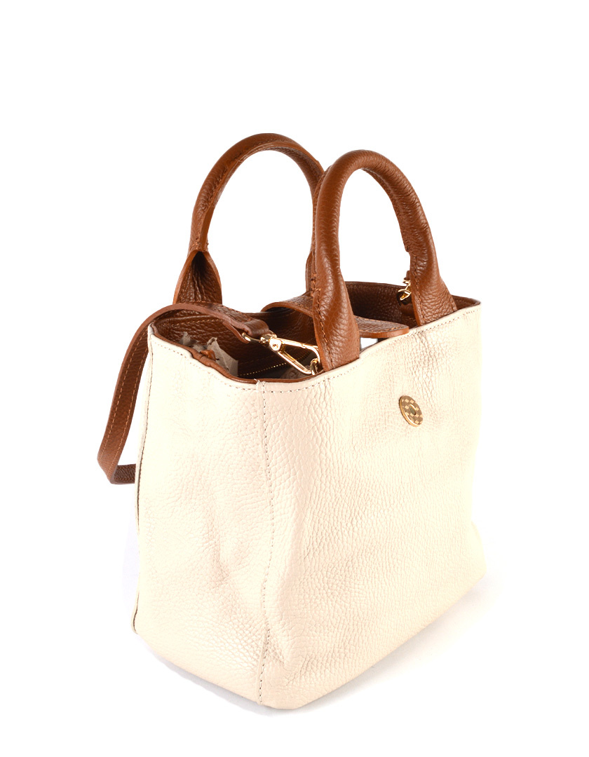 • Elegant leather handbag featuring a removable, adjustable shoulder strap. The inner clip allows you to effortlessly style the bag in two versatile ways.