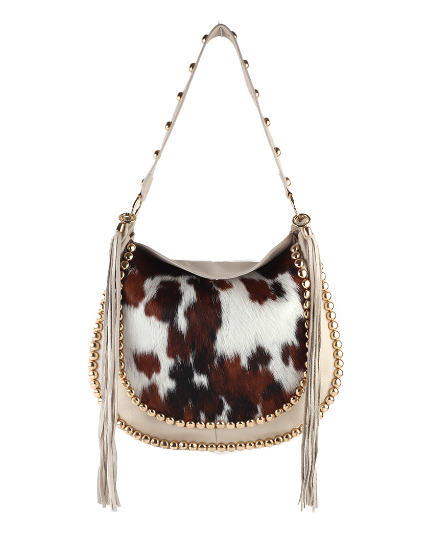 • Leather western hobo bag with studs, fringes and a luxe cowhair look. Crafted from high-quality leather with inner zip pocket. A stylish statement piece for everyday use.