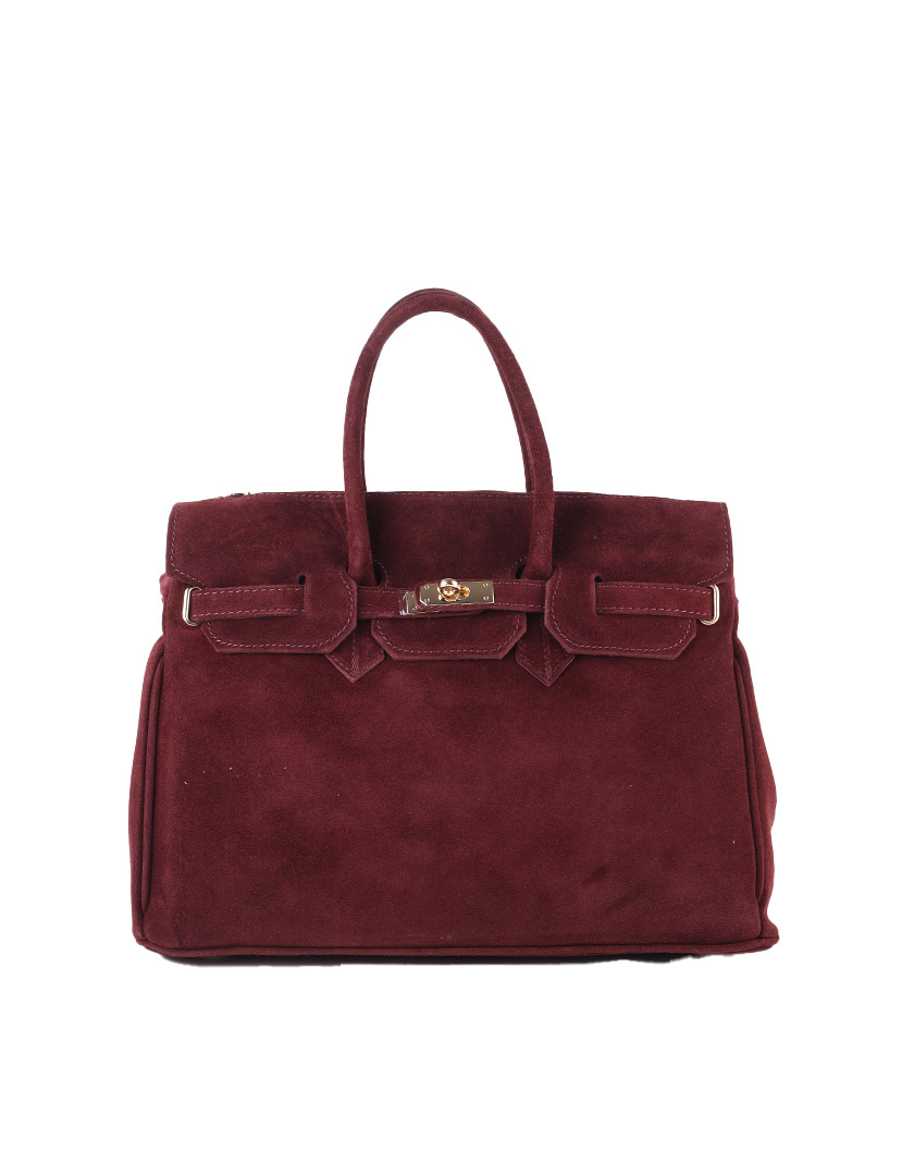 Elegant suede leather handbag with gold-tone clasp. Timeless design with sturdy handles and a refined finish. Perfect for work or daily use. Available in several stylish colors.