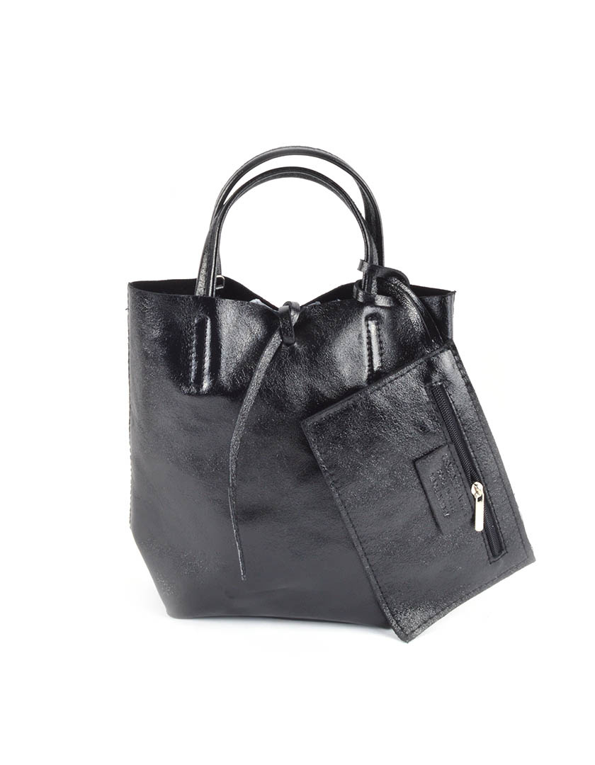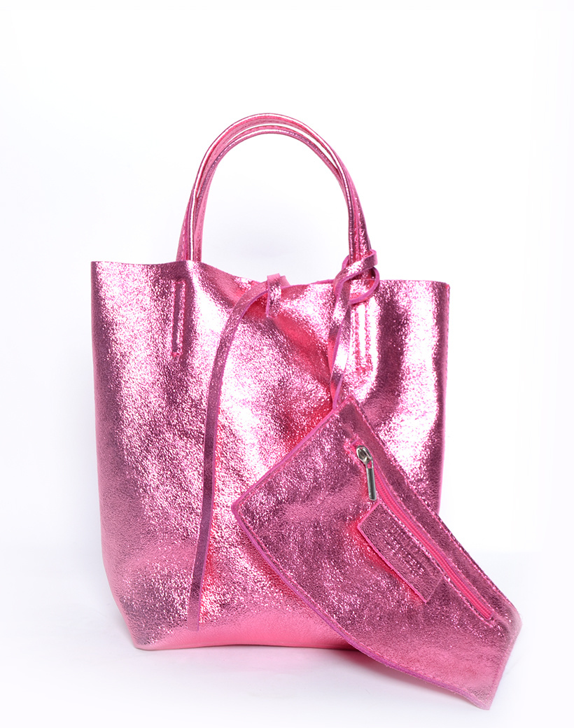 • Suede mini shopper with pouch and a shoulder strap. The bag has cords for closure.